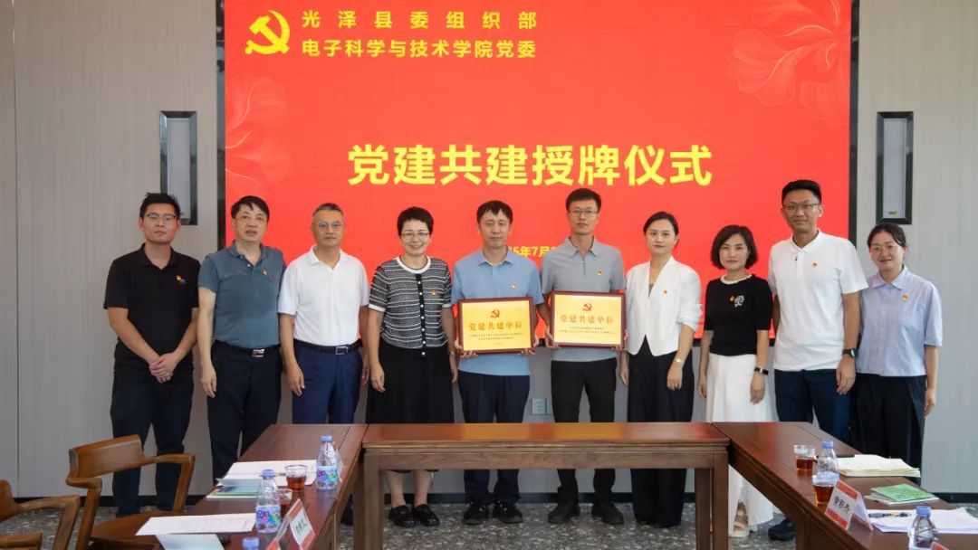 党建共建授牌仪式上,徐榕和石慧霞分别代表双方党委为电子学院办公室党支部书记陈精锋同志和光泽县鸾凤镇机关党支部代表何希朝同志授牌,并希望双方机关党支部能够发挥桥梁纽带和组织协调作用,为校地合作增光添彩。