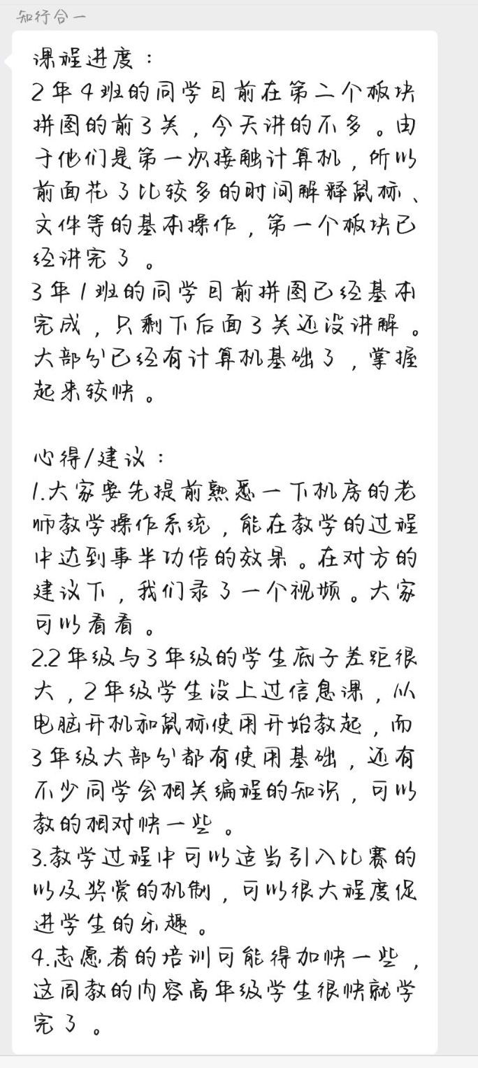 总的来说课堂进行得比较顺利,小朋友们对于计算机类的课程兴趣很大。我们提前备好教案,为同学们带来了很多的收获,是一次很有意义的志愿者活动!