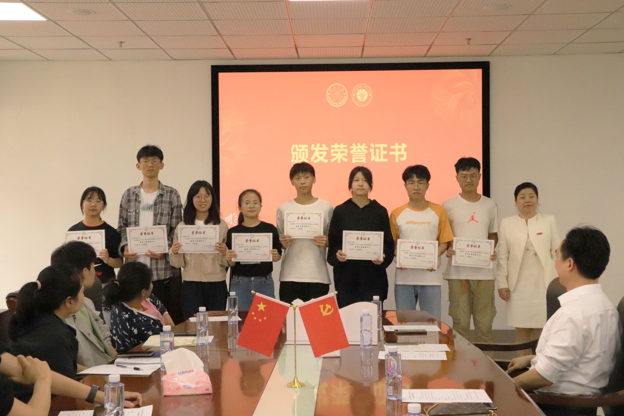 学院党委书记吴国瑛为学院宣传工作先进个人颁发荣誉证书,并合影留念。