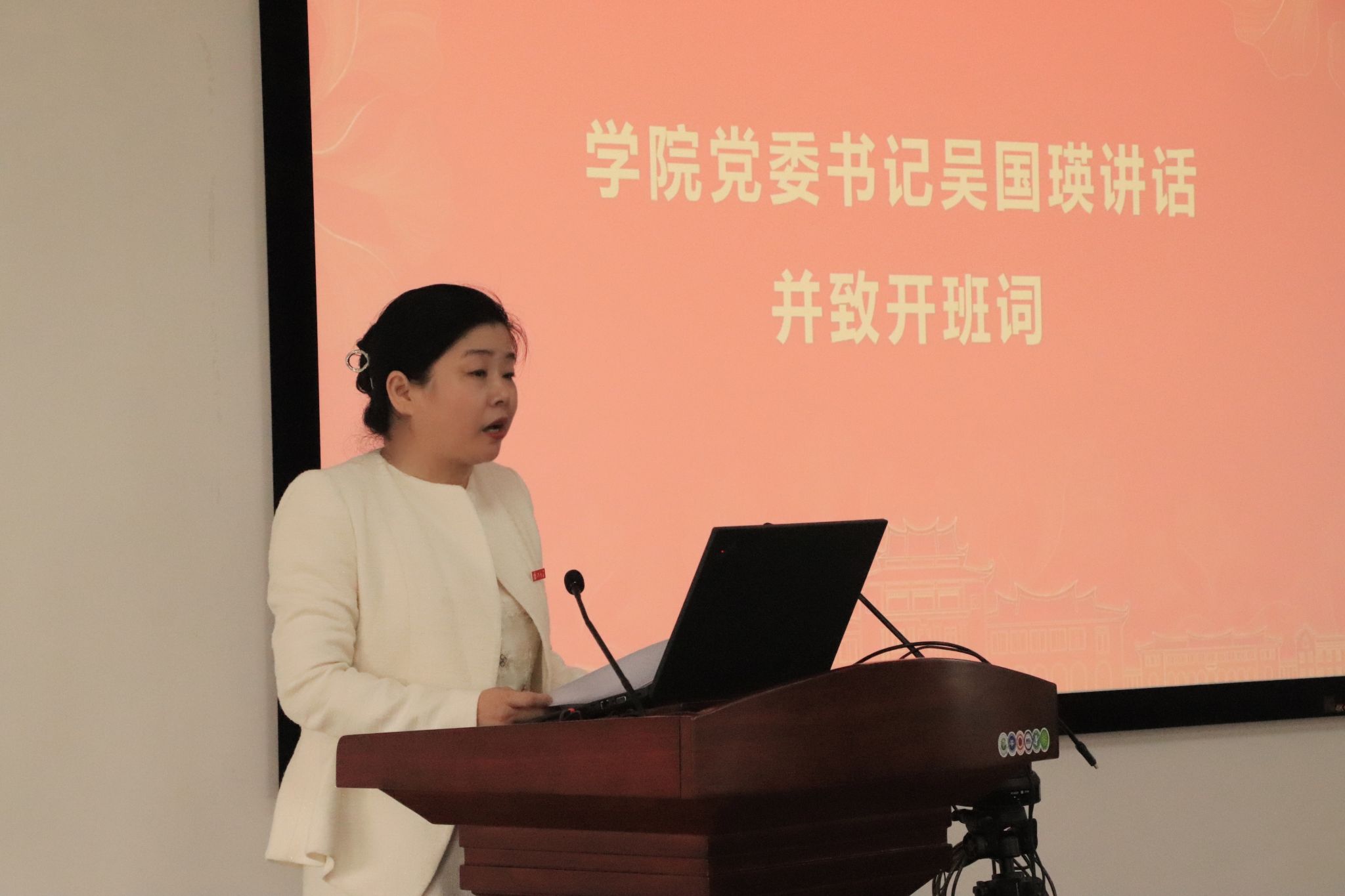 学院党委书记吴国瑛讲话并致开班词。她充分肯定了过去一年学院师生宣传骨干所做的工作。在学院党委领导下,学院宣传工作始终坚持思想引领、内容至上,传播电子学院好声音,弘扬电子学院正能量,交出了一份优异的成绩单。而后,她对学院师生宣传工作骨干提出了三点要求:加强理论武装,持续壮大主流声音;强化责任意识,营造清朗的网络空间;增强自身能力,积极传递正能量。最后,她希望全院师生宣传工作骨干自觉承担起“举旗帜、聚民心、育新人、兴文化、展形象”的使命任务,为学院事业发展营造良好的舆论氛围、提供强大的精神动力。