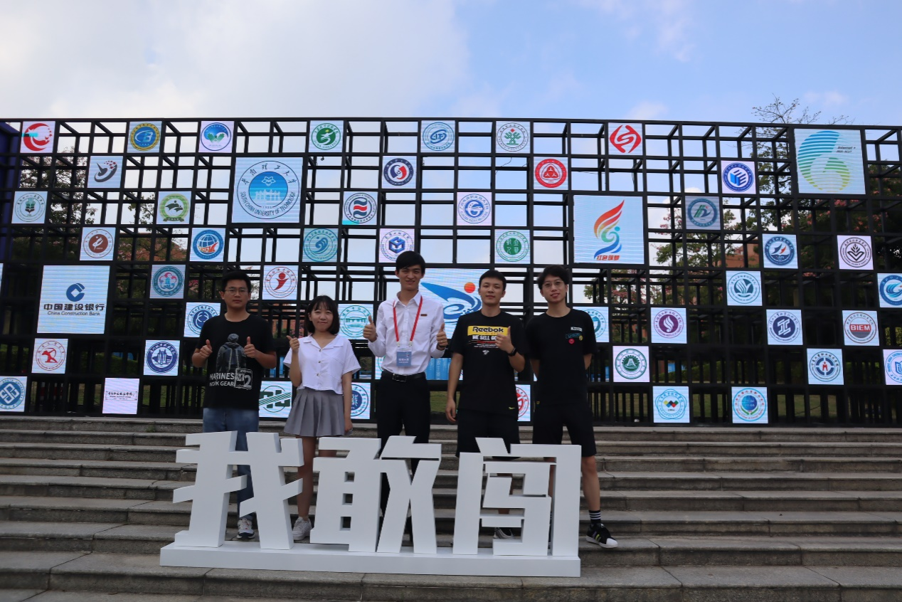 团队成员在第六届“互联网+”比赛现场,其中:缪春颖(左二)、陈佳(中)、胡天宇(右二)、王昕健(右一)