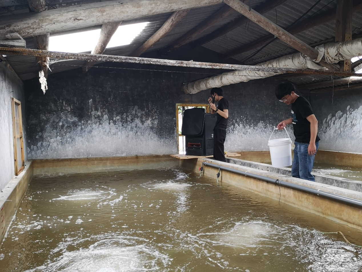 团队成员在各地水产养殖场进行实地调研