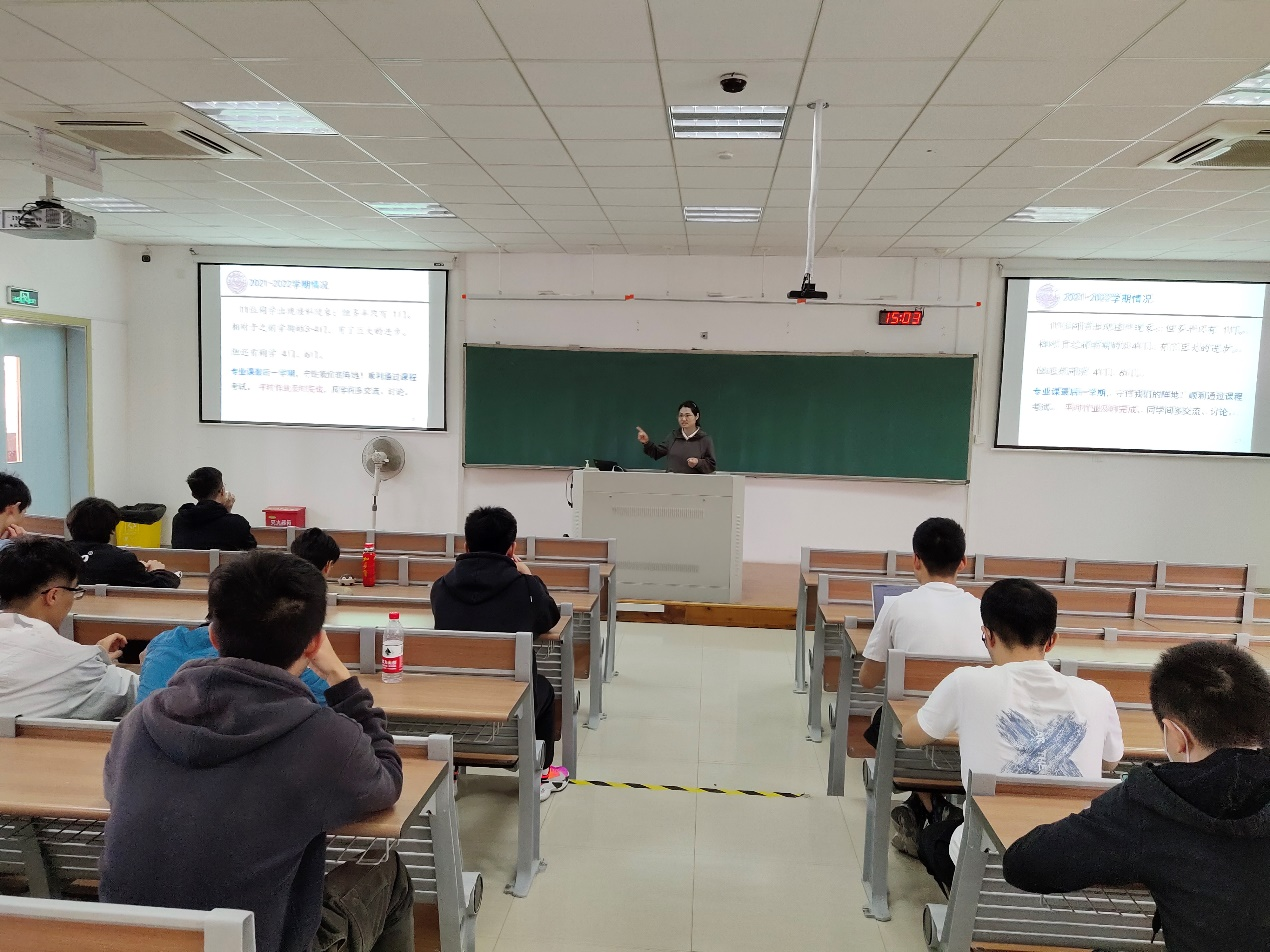 4月17日,2019级电磁场与无线技术班主任刘娜老师在学武楼组织了一场班会。刘娜老师总结了上学期的课程情况。她说,大家的成绩都在不断变好,并肯定、鼓励了同学们一直以来的辛勤努力。她与学生们讨论了未来的发展,提出考研、保研、就业都是大事,都要早做准备。
