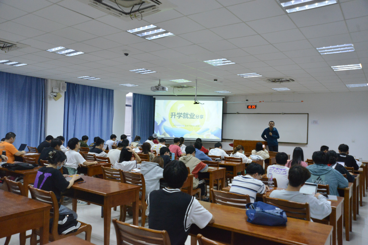5月10日,2019级电子信息科学与技术班级在学武楼召开班会。在会议上,为了解答同学们关于升学就业的疑惑,顺利迎接悄然将至的毕业学年,班主任曹烁晖老师围绕保研、考研、实习和就业四个方面和同学们分享了相关意见。