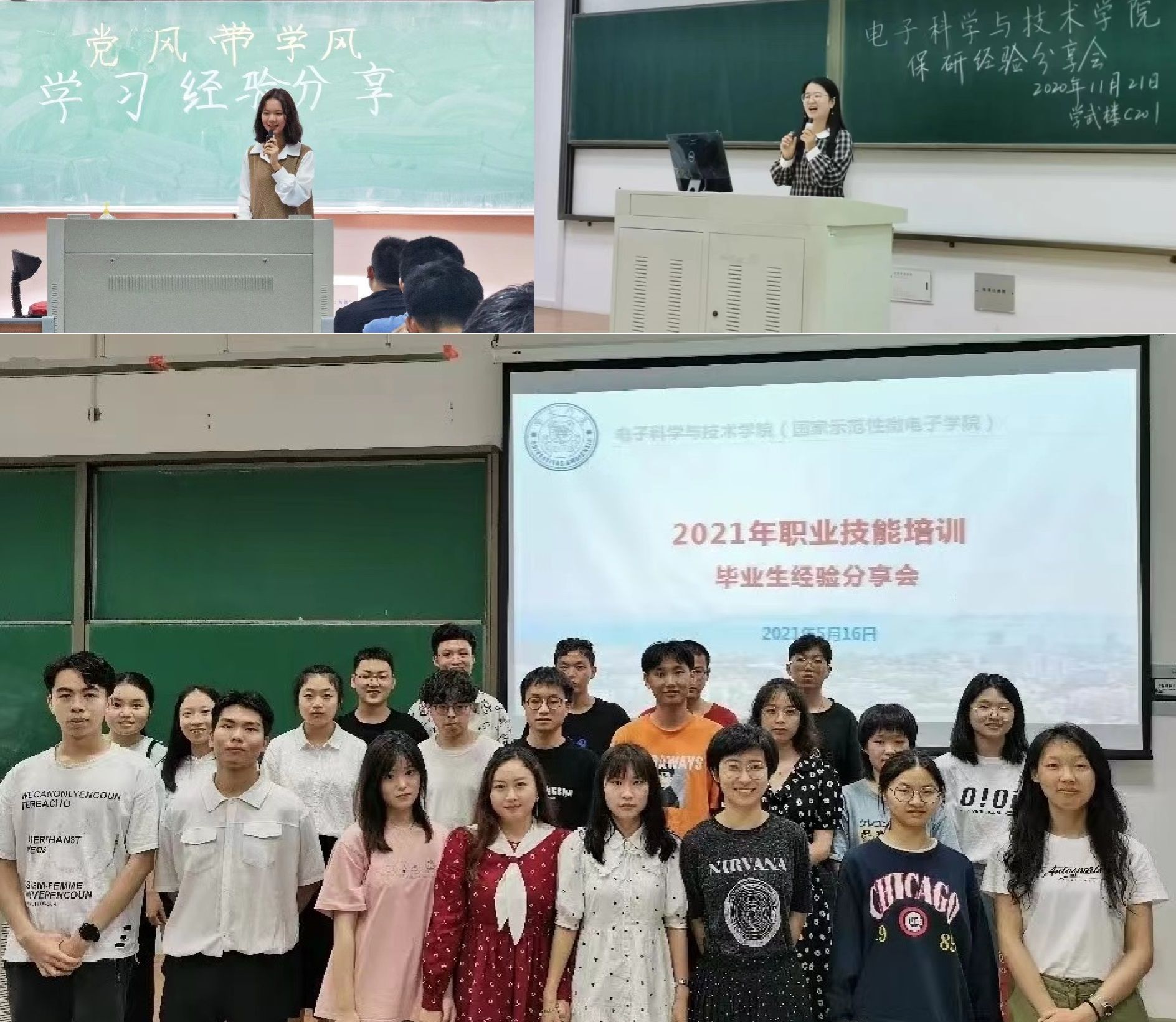 学院坚持“三全育人”理念,充分挖掘导师、班主任、辅导员、朋辈导师示范引领作用,召开学业学风建设会议,举办师生座谈会,举行“电子周”专业分流指导会,开展学院跨校区办学难题调研会,举办“芯路启航”保研、考研、学习经验分享会,引导学生明确大学生涯规划,开展学业指导、学业帮扶和学业互助工作,帮助学生明晰学习目标和学习方法。在优良学风的熏陶下,学院本科生升学率逐年攀升,2021届毕业生升学率为55%,2022届毕业生升学率达62%。