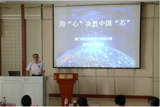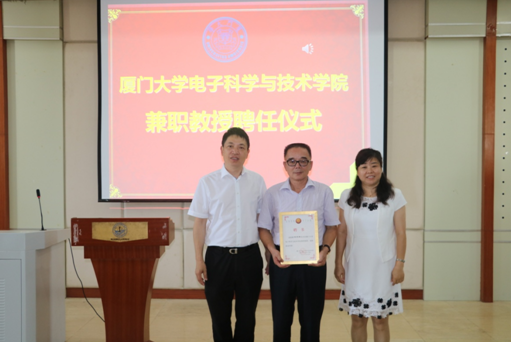 7月10日上午,我院敦聘厦门优迅高速芯片有限公司董事长柯炳粦先生为我院兼职教授、创新创业导师仪式在海韵教学楼504报告厅举行,厦门优迅高速芯片有限公司董事长柯炳粦先生、副总经理姚维厦先生、技术总监林永辉先生、测试部总监陈哲先生、人事经理叶素芬女士,我院党委书记吴国瑛同志、副院长(主持工作)陈忠教授等出席了仪式。