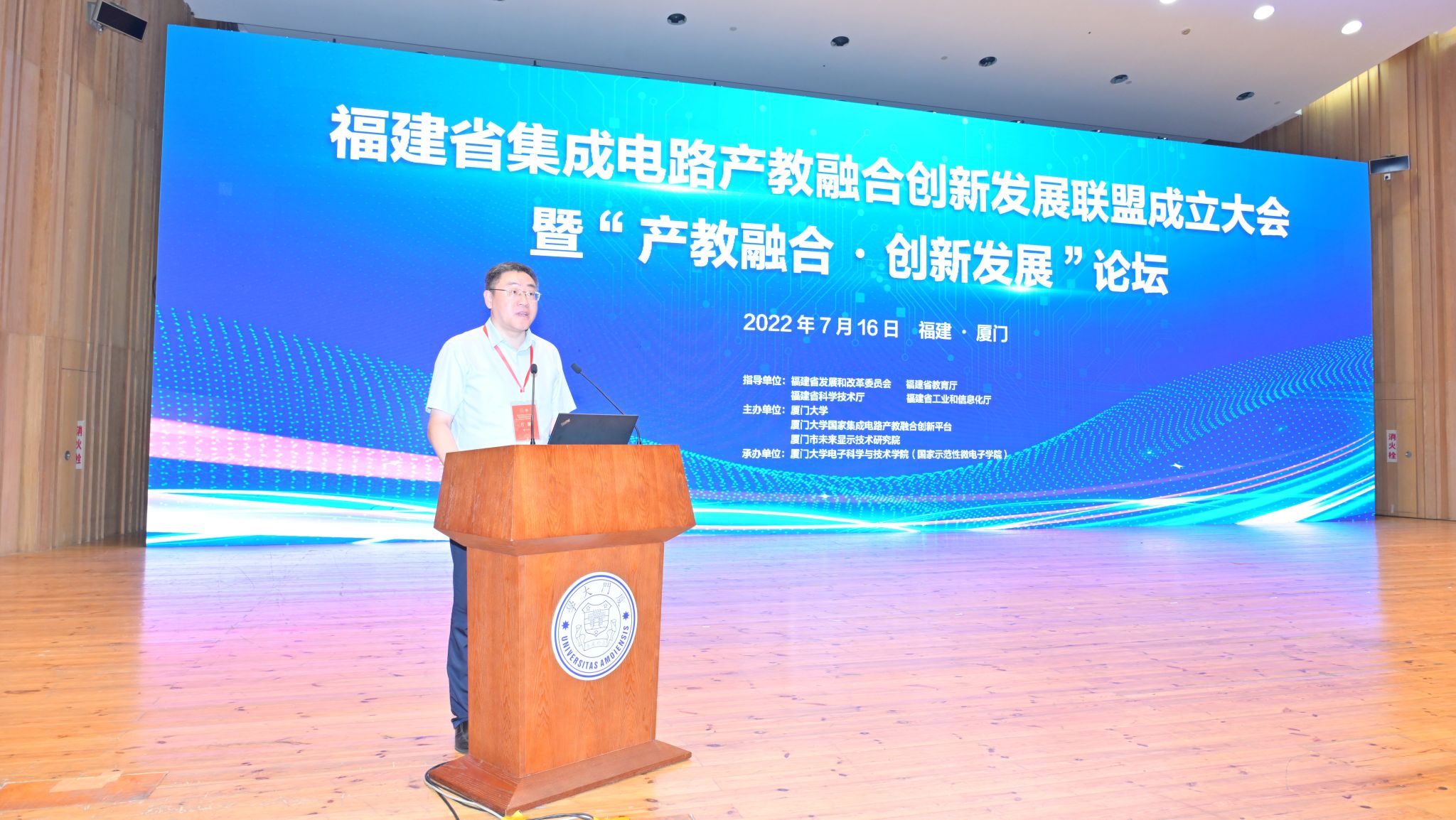为做大做强福建省集成电路产业,充分发挥厦门大学国家集成电路产教融合创新平台的引领和辐射作用,7月16日上午,厦门大学会同福建省集成电路企业、高校、科研院校、行业协会等,在厦门大学科艺中心举行福建省集成电路产教融合创新发展联盟成立大会。