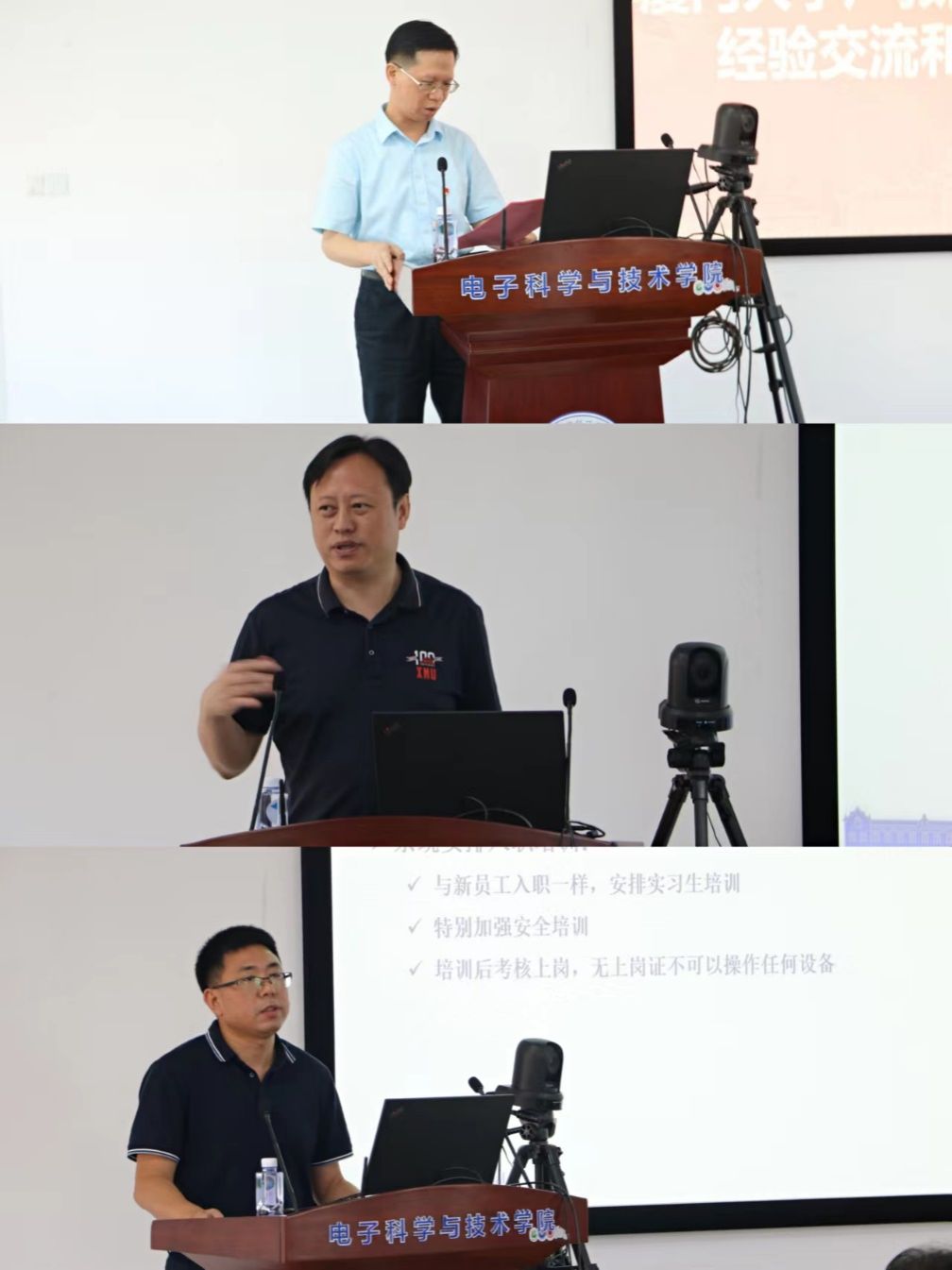 企业导师代表、厦门云天半导体科技有限公司研发部总监阮文彪简要介绍了厦门云天半导体科技有限公司的产教融合培养情况,并就产教融合培养分享合作心得。他指出,学生应与企业双向选择,加深彼此了解才能更好合作;公司安排系统培训,考核后上岗;导师与学生充分讨论,合理安排课题,了解和尊重学生需求。