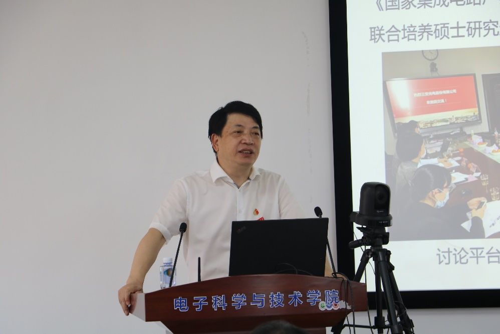 厦门大学研究生院培养与管理办公室副主任邱文华肯定了我院产教融合平台在人才培养方面的努力,将人才培养与社会需求紧密对接,为国家关键技术领域输送创新型、复合型、应用型人才。同时,他就人才培养提出三点建议:一是应以习近平新时代中国特色社会主义思想为指引,全面贯彻党的教育方针;二是希望学院抓住机遇,与相关企业根据行业需求共同制定培养方案、开设课程,共同编写精品教材;三是加强双师型的导师队伍建设,构建双导师指导体系。