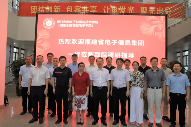 7月29日下午,福建省电子信息集团党委副书记郑志锋、投资发展部总监胡岩洁、投资发展部副总监洪潇祺、电子信息应用技术研究院副总经理鲜永章、兆元光电研发技术总监张帆、华映科技研发部部长苏智昱等一行来院调研。学院党委书记吴国瑛、院长陈忠、副院长董俊、副院长张保平、党委副书记郑莉等参加座谈。