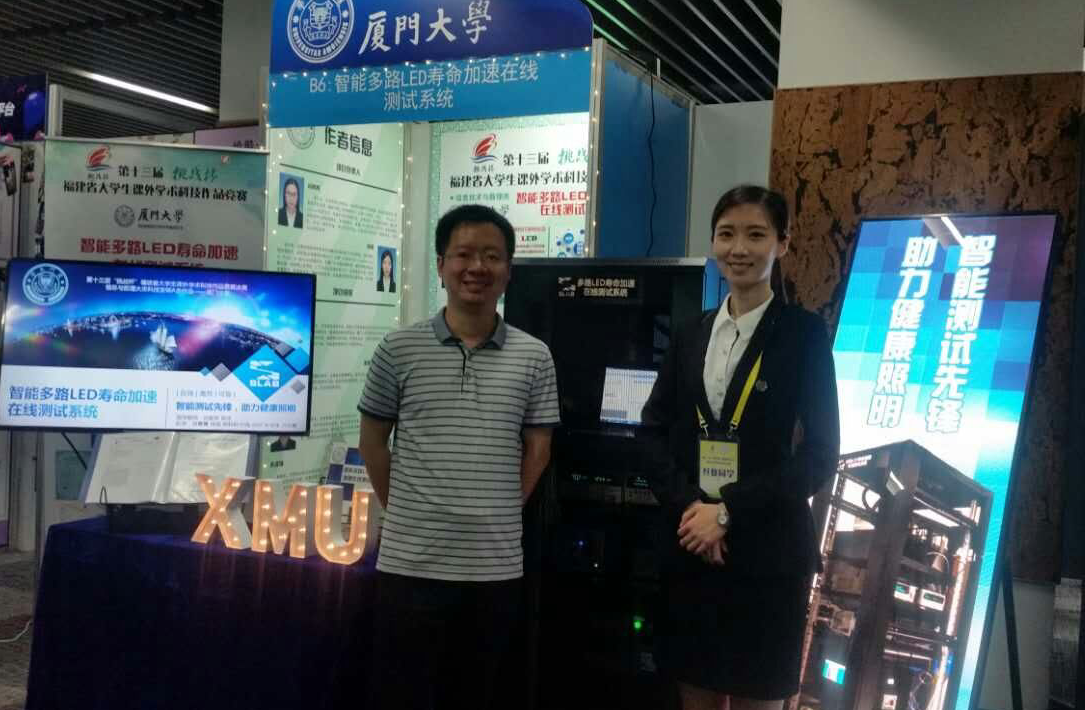 此次竞赛中,电子科学与技术学院取得了可喜可贺的成绩。我校有十件作品进入决赛并获奖,其中我院有一件,获得一等奖。由电子科学系2014级硕士生肖菁菁、2015级硕士生肖瑶等人负责的团队《智能多路LED寿命加速在线测试系统》获得福建省一等奖。该项目由电子科学与技术学院陈忠教授、吕毅军教授共同指导,解决传统LED寿命加速方法人工操作繁琐、测试参数不全等问题,实现实验条件在线监控和多参数智能化测试。