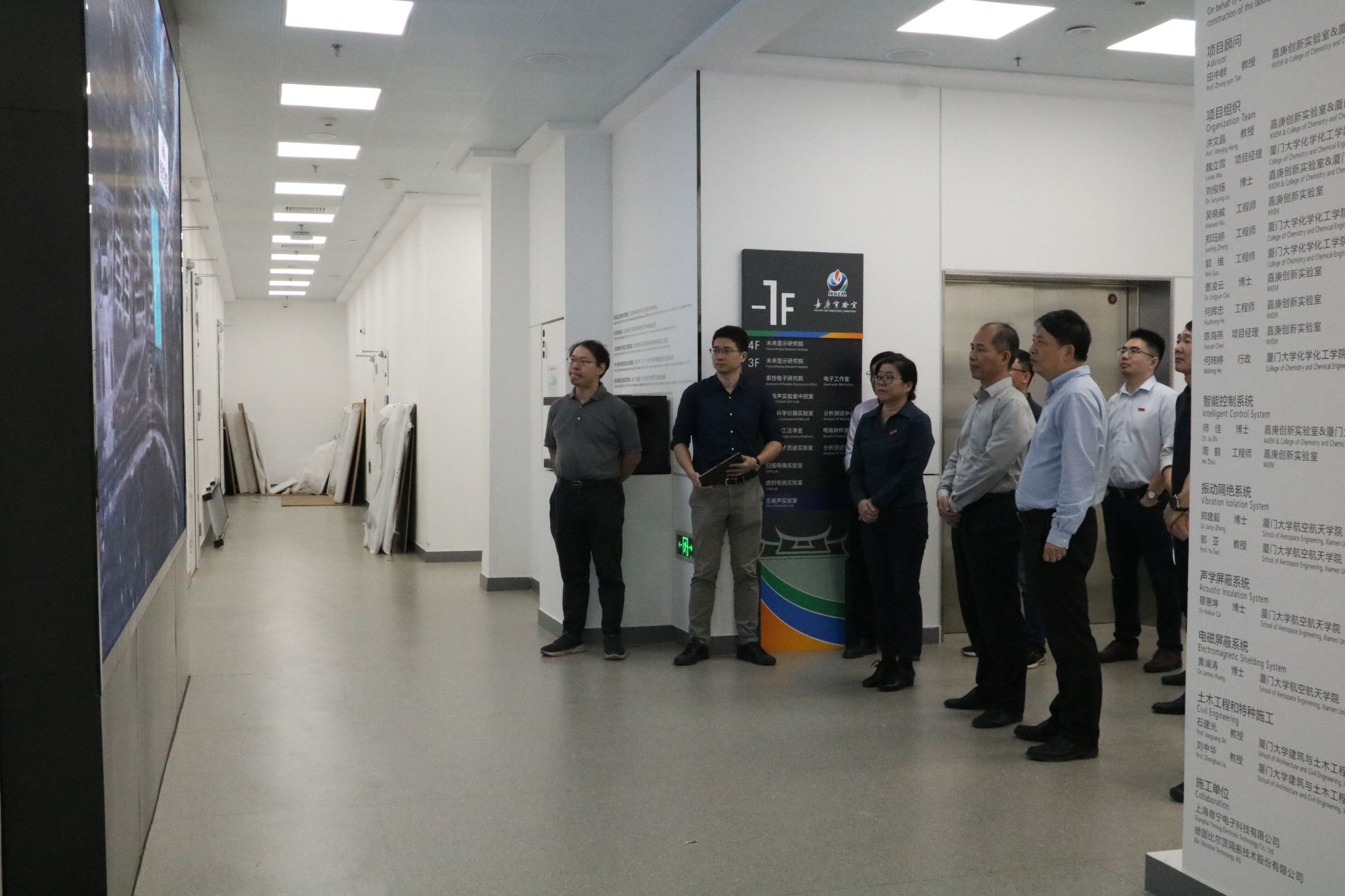 厦门市工信局副局长李建明、电子信息处处长李旺生及各位专家认真审阅材料并听取报告,对厦门大学为平台建设所做的大量工作表示肯定。李建明表示,平台建设的诸多成果离不开厦门大学的支持和电子学院的努力,希望电子学院能够继续有序推进建设工作,进一步提升人才培养的规模和质量。随后,李建明副局长等一行人现场考察了集成电路特色工艺和先进封装基础平台、第三代半导体工艺基础和创新技术研发平台、集成电路设计平台。