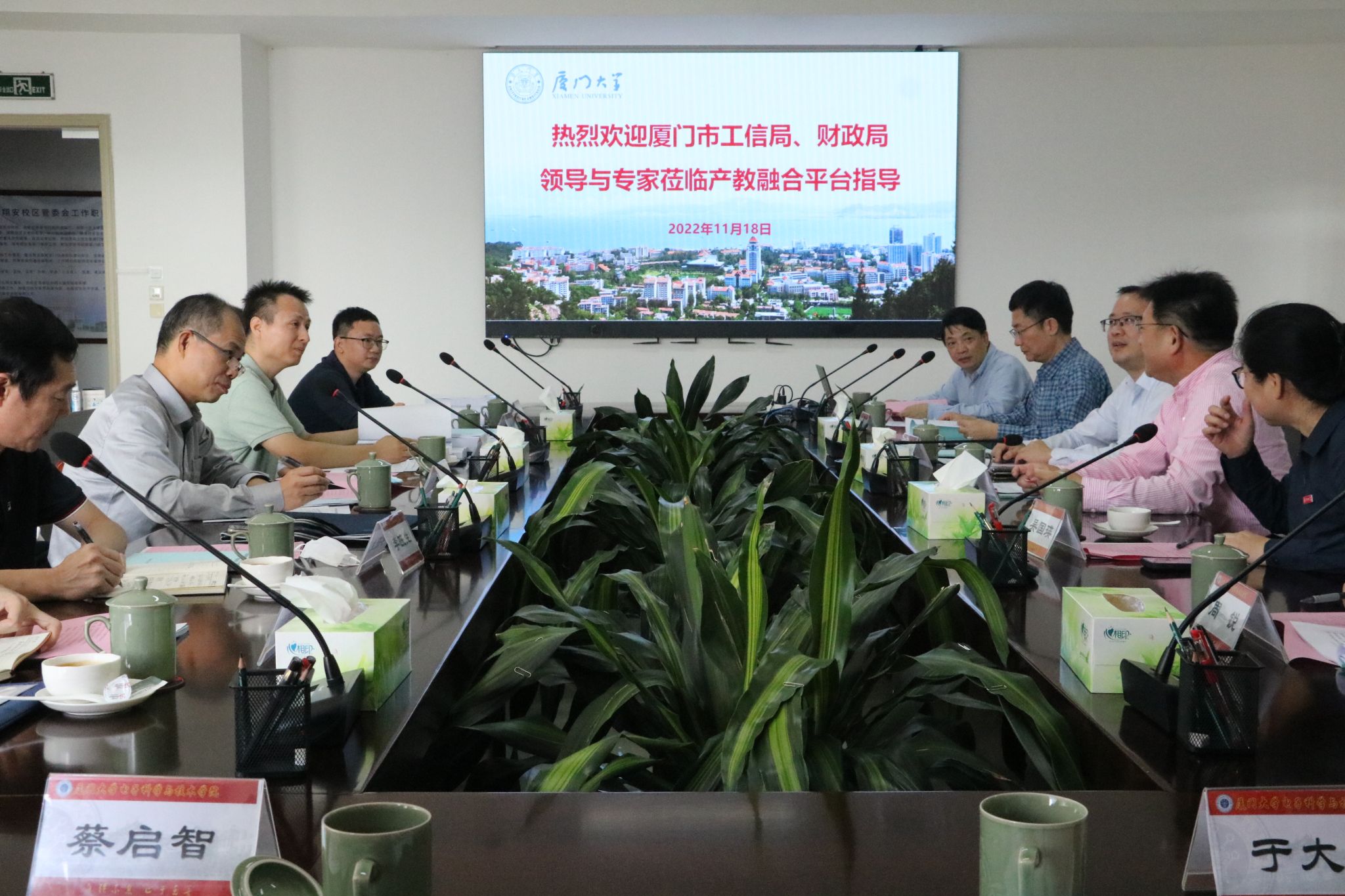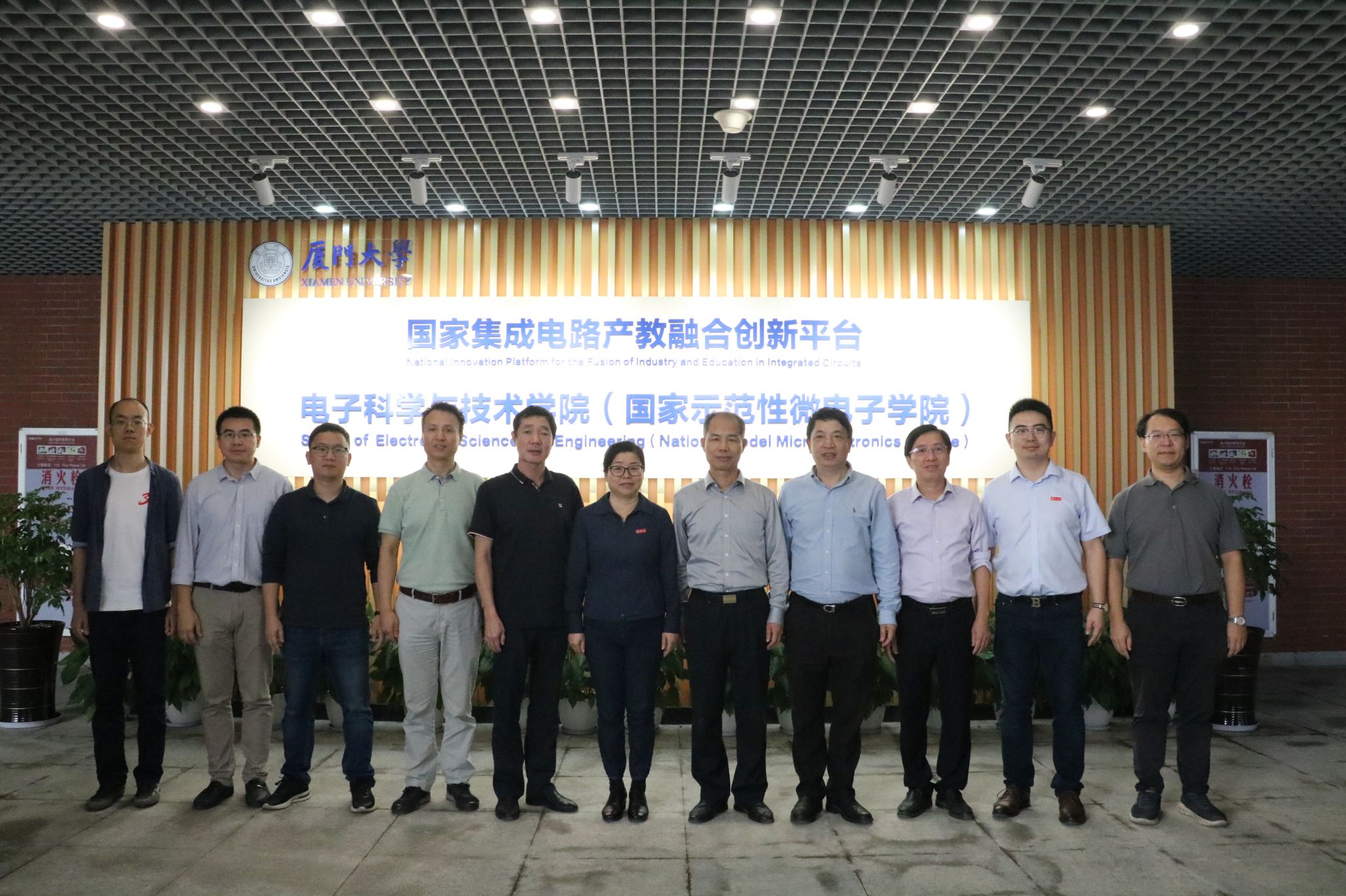 厦门市工业和信息化局电子信息处主任科员刘宇翔,电子科学与技术学院副院长张保平、蔡励元,微电子与集成电路系主任于大全,副主任周剑扬、李澄,集成电路设计与测试分析福建省高校重点实验室主任李晓潮等参与会议。