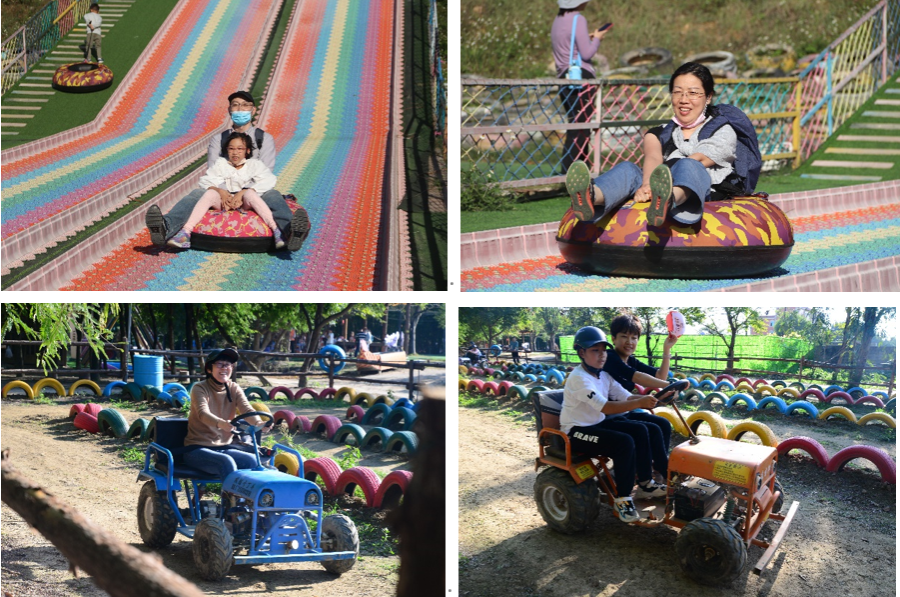 下午的金农湾农场一片欢声笑语。农场占地面积近 200 亩,视野开阔,风景秀丽,农场内鱼塘、菜园、瓜棚、竹林、小径、木屋错落有致,整齐的树木挺拔屹立。依托森林公园,农场空气清新,水源干净清澈。大家嬉戏玩耍,欢声笑语,乐此不疲!休闲区里,大家一边泡茶一边话家常,其乐融融,好不惬意!开心的不只是小朋友。