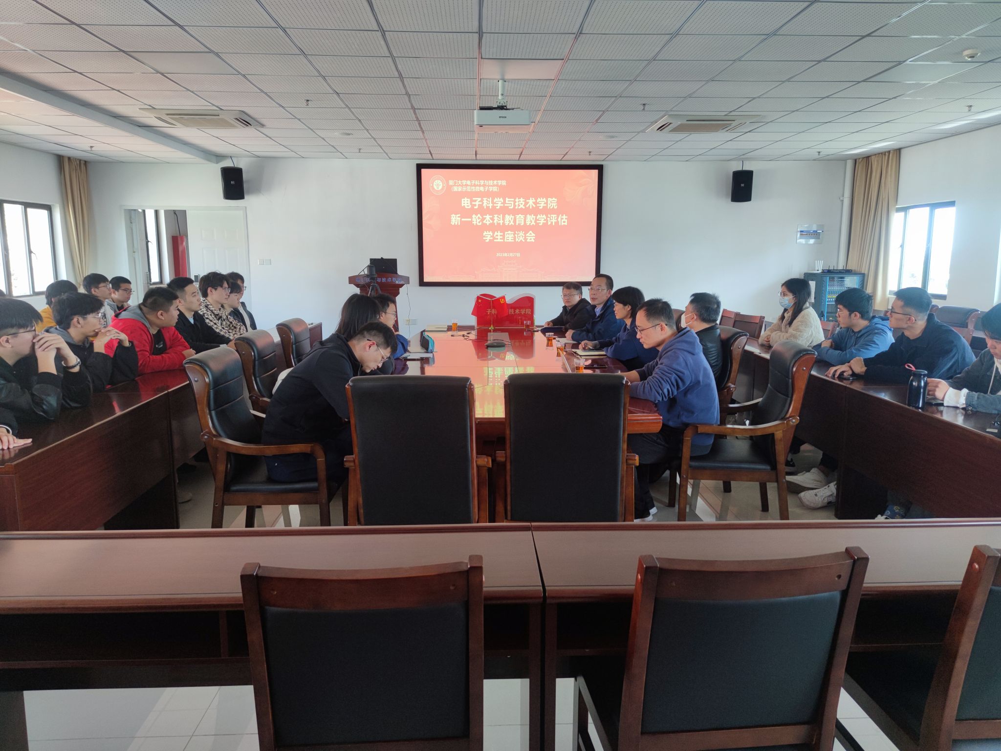 2月27日下午,学院以本科教育教学审核评估工作为契机,在南存钿楼A513会议室召开学生座谈会。学院副院长董俊、党委副书记郑莉、微电子系副主任周剑扬、实验教学中心常务副主任陈华宾、本科教学秘书刘恺之、辅导员魏文龙、严威及30余名本科学生代表参加座谈。座谈会由郑莉主持。