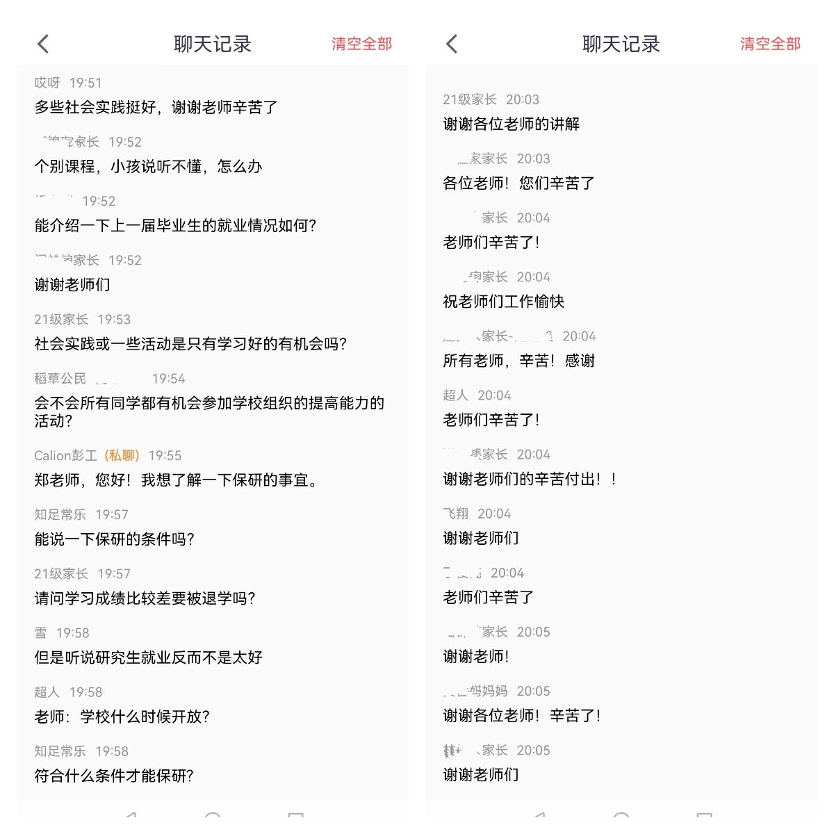 家长们在屏幕前认真倾听,与老师积极互动交流,老师们就家长提出问题和建议予以积极回应,辅导员还给家长们留下了联系方式,希望以后进一步加强沟通联系。家长们纷纷为学院领导的用心和辅导员的认真负责点赞。“上大学后,与孩子的沟通变少了,不太了解他的大学生活,通过家长会,了解了孩子的学习、生活情况,知晓了孩子的行为和心理活动,这可以帮助我们减少与孩子之间的代沟,增加了情感交流”一位家长表示。