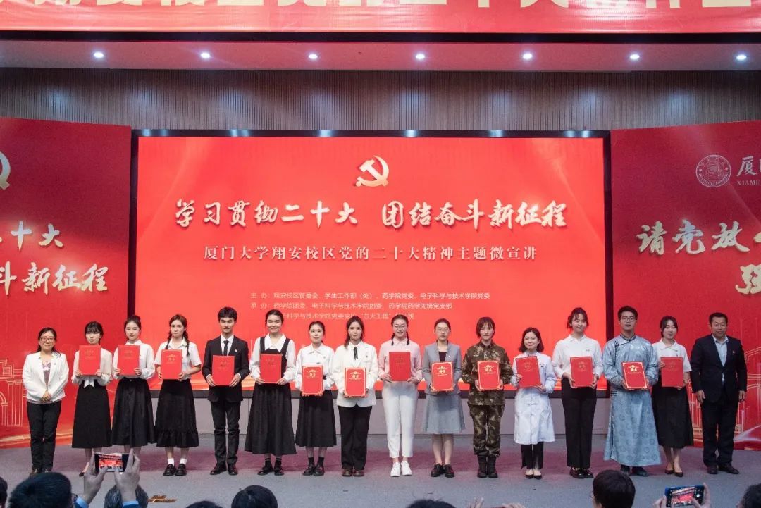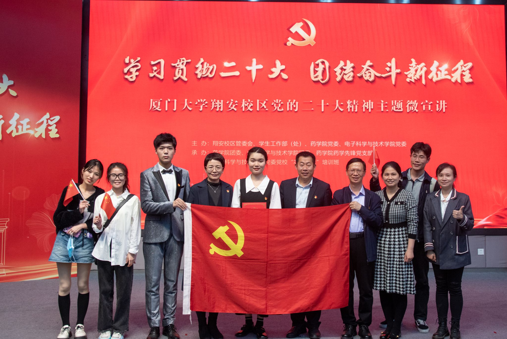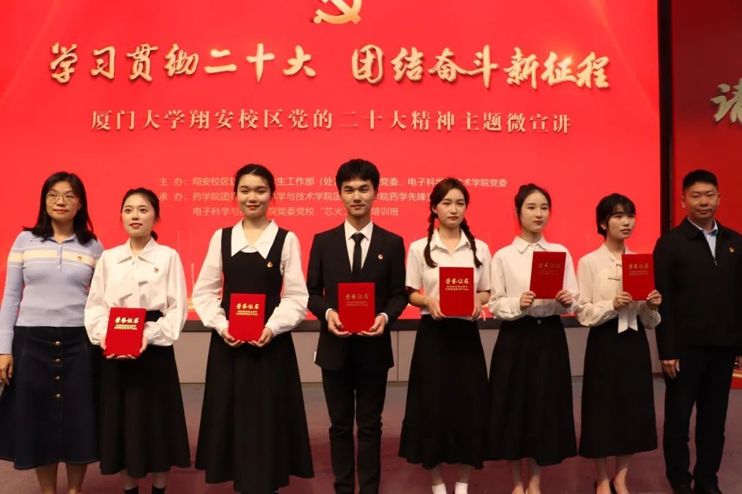 本次主题微宣讲由翔安校区管委会、学生工作部、药学院党委、电子科学与技术学院党委主办,共吸引了来自13个单位的同学们踊跃报名,通过初赛选拔了14位同学进入决赛,并组建了翔安校区党的二十大精神学生宣讲团。做为主办方之一,我院还组织了专家辅导会、集体备课会、观摩试讲会等多轮培训,不断增强宣讲针对性和实效性。接下来,杨明雪作为宣讲团成员之一,将进社区、进支部、进社团等,用喜闻乐见的方式带动青年人全面学习、全面把握、全面落实党的二十大精神。