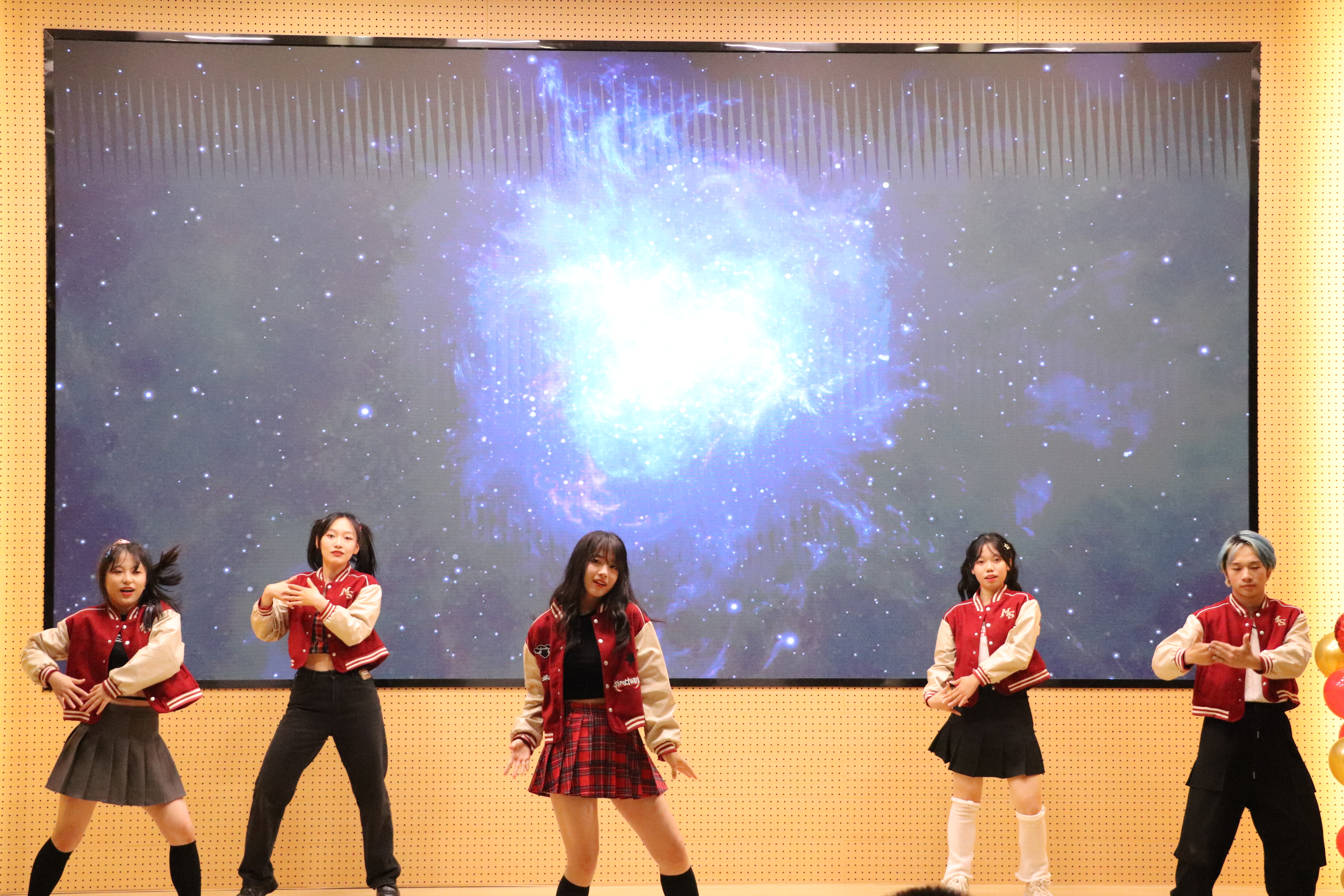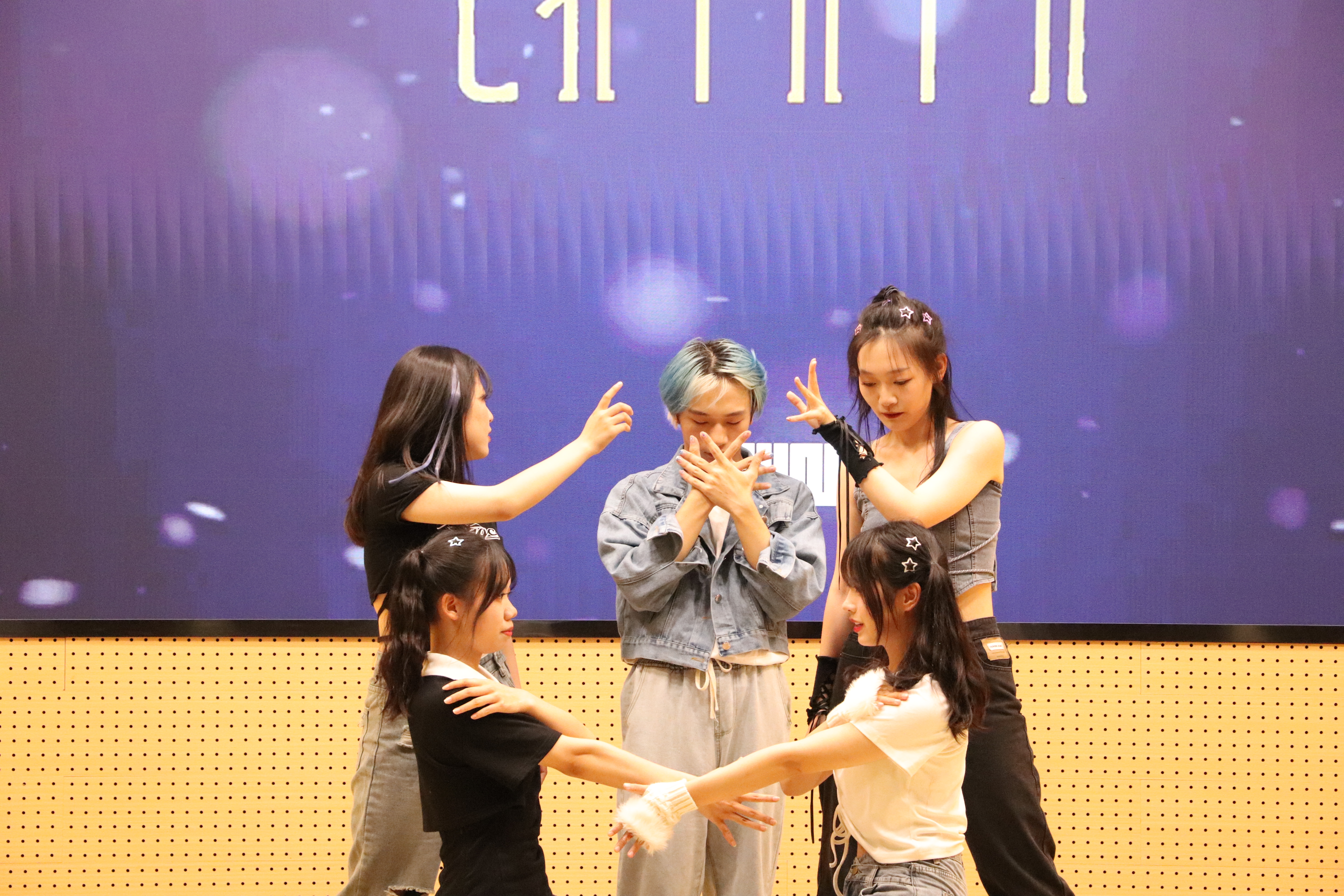 接下来是黄国斌、万芷萱、罗安贝、李思思、曾世晗为同学们带来精彩舞蹈《Kitsch》。