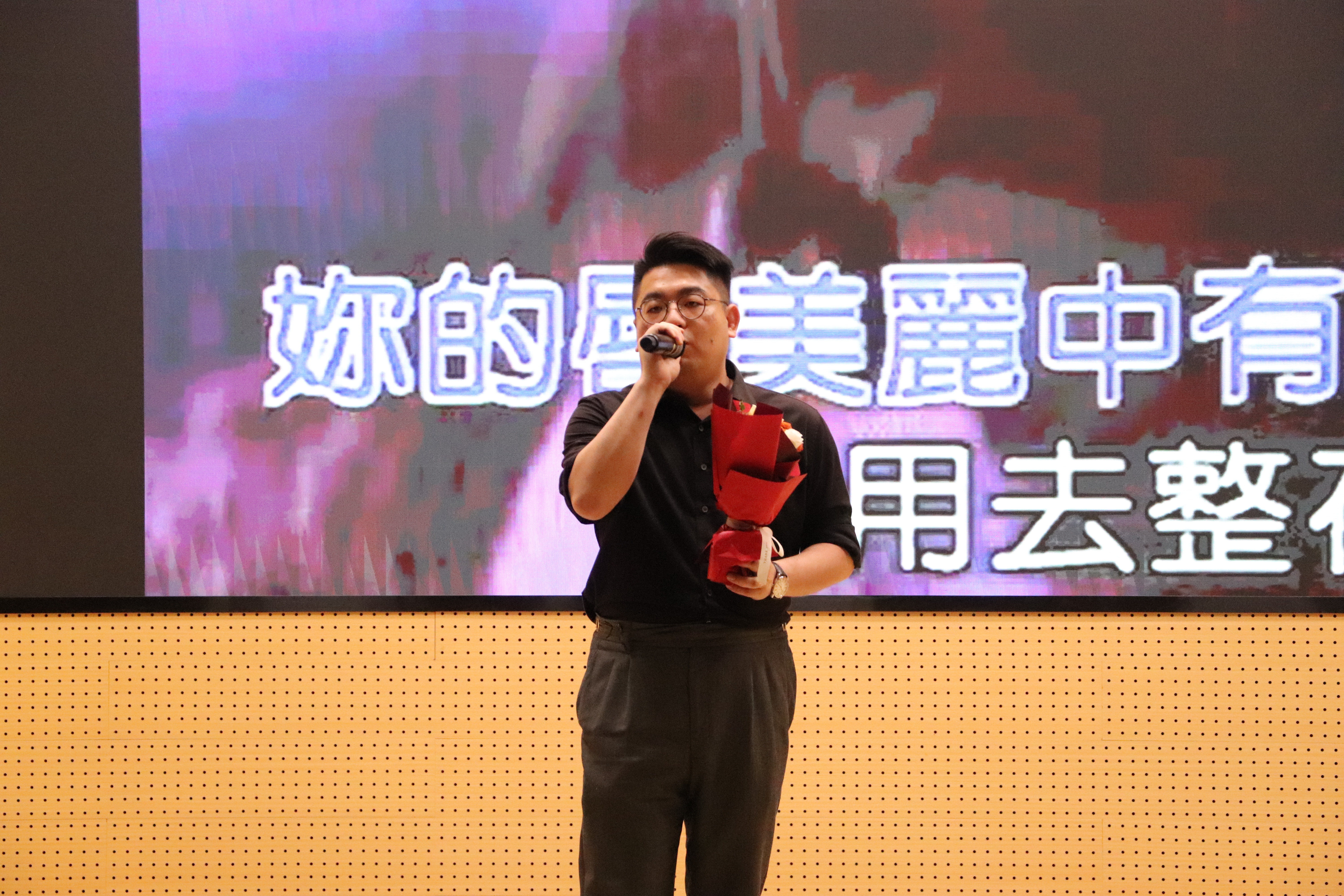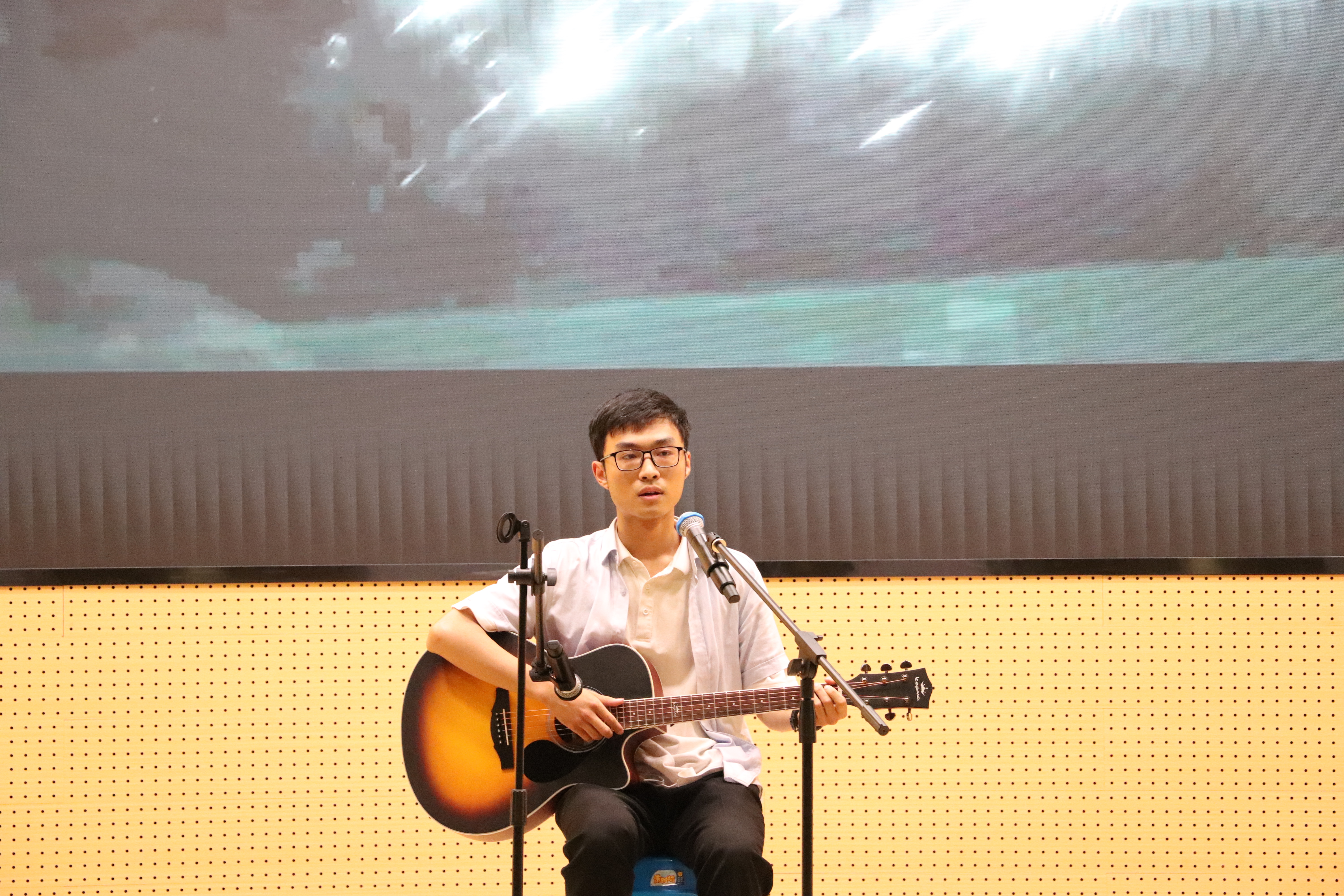 宁绿叶同学为同学们带来歌曲《蝴蝶》,这是一首集听感和意境于一体,关于爱和自我救赎的歌曲,他用这首歌唱出了自己的心声与愿望,不禁让同学们回味起自己大学生活的酸甜苦辣。