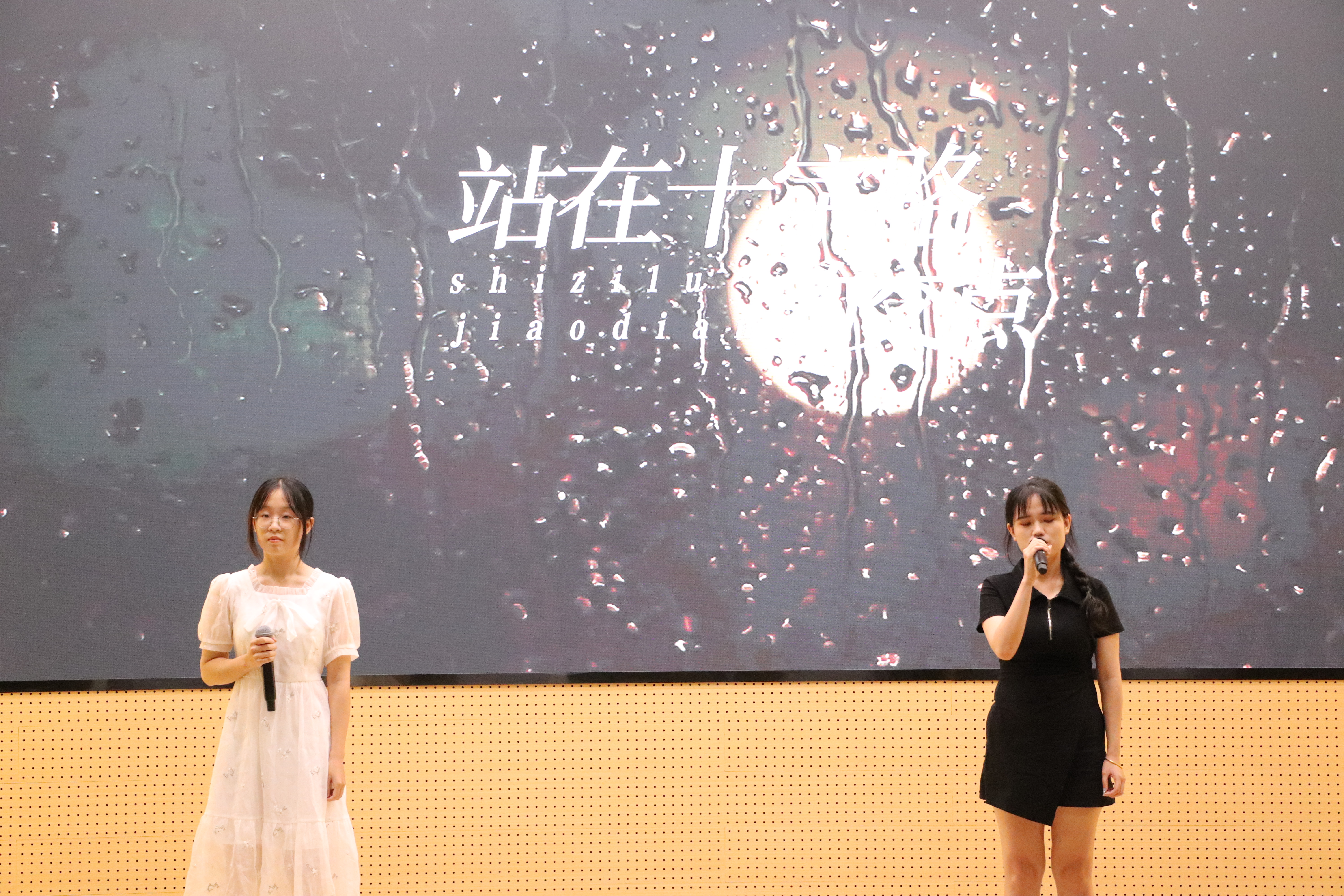 颜晓焫、黄晟湉同学带来双人合唱《雨天》。“你能体谅,我有雨天,偶尔胆怯,你都了解”,柔美的歌词唱出了同学们内心深处的温柔。是啊,那些雨天,正是有自己的好友、同学的陪伴和关心,才能看到雨后的彩虹。