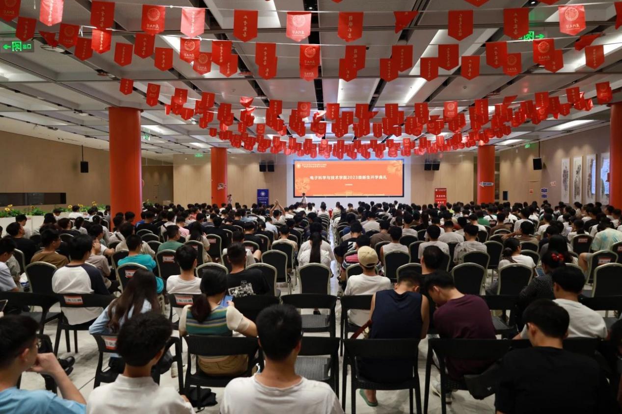 9月6日上午,学院2023级新生开学典礼在翔安校区思源餐厅三楼举行。校友代表周文蕙,学院党委书记石慧霞,院长陈忠,副院长董俊、蔡励元出席典礼,电子工程系主任罗正钱,电子科学系主任蔡淑惠,微电子与集成电路系副主任李澄,电磁声学研究院副教授刘娜,实验教学示范中心高级工程师林和志,电子科学系副教授、半导体照明实验室党支部书记吴挺竹,2023级本科新生班主任苏毓涵、窦宇航、张捷、庄明伟,团委书记胡凡,团委副书记刘锦锗、邵亢邑,教学秘书郑毓玲,辅导员许通,2023级本科生辅导员林燕红,2023级研究生辅导员陈斯杰以及2023级全体新生参加典礼。典礼由学院党委副书记方银水主持。