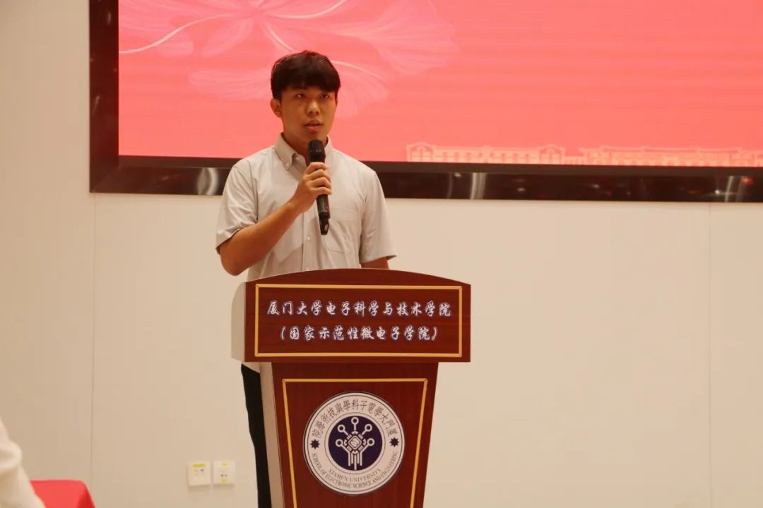 陈忠从学院历史和发展现状、产教融合与人才培养、创新驱动与产业发展三方面向同学们作学院基本情况介绍。他指出电子学科是厦大工科中最有历史、最有前景的学科之一,也是国家和行业发展急需的关键学科;电子学院有着深厚的学科背景、优秀的师资团队、完善的学科体系。他希望同学们能在学院一流学科的平台上勤奋学习,为解决我国芯片“卡脖子”问题和区域产业发展作出贡献。
