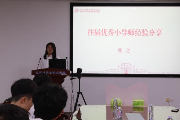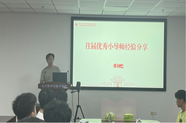 往届优秀芯导师代表2018级电子科学系张钊恺、2021级电子工程系张之分享了担任芯导师的心得体会。张钊恺作为学院第一届芯导师的优秀代表,鼓励芯导师们积极与自己对接的新生联系交流,组织形式多样的见面活动,谈心交流,分享学习经验,传递电子能量。张之结合自身经历分享了担任芯导师的初心,讲述了和新生的相处感悟和所遇到的挑战和困惑,鼓励芯导师们担起朋辈芯导师的责任,正向引导,尽力为大家答疑解惑。