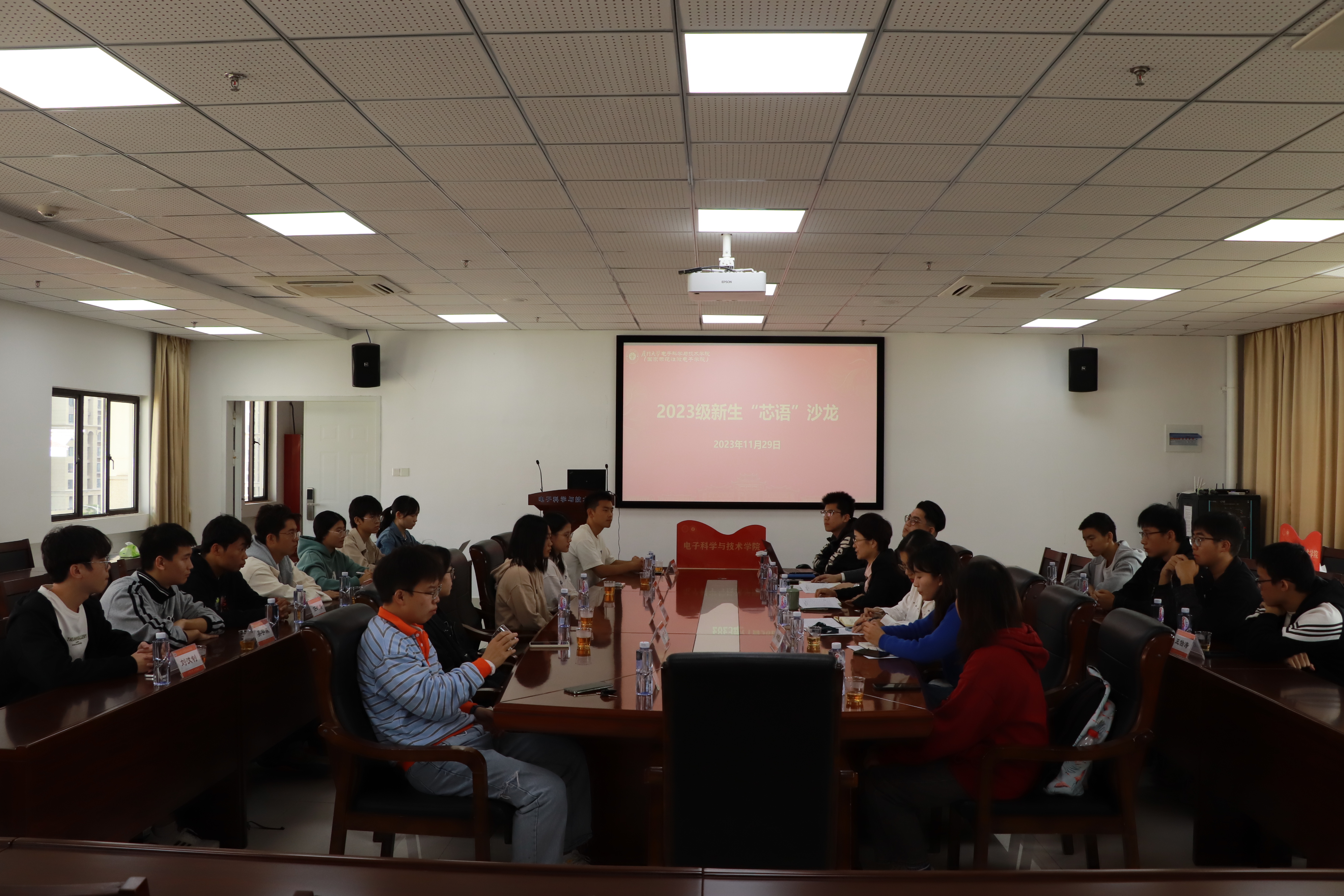 为更好地了解2023级新生入学以来的学习生活状态,加强师生之间交流,提高学院各类育人活动开展实效,提升育人服务质量,11月29日上午,我院在南存钿楼A513会议室举行第一期“芯语”沙龙。学院党委书记石慧霞,团委书记胡凡,辅导员林燕红、陈斯杰及2023级新生代表参加了本次沙龙活动。活动由学院党委副书记林蕊主持。