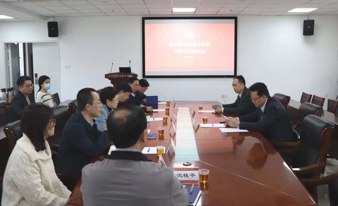 学院党委书记石慧霞代表班子感谢学校对学院各项工作的指导和支持,坚决拥护校党委对干部的任命决定。她表示,学院将以更高的政治站位和战略定位,用严格要求、深入思考和长远眼光,团结新任同志,推进学院建设,彰显厦大电子学科特色优势,为学校发展做出更大贡献。