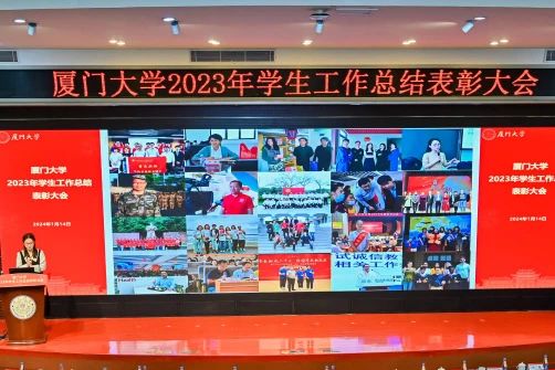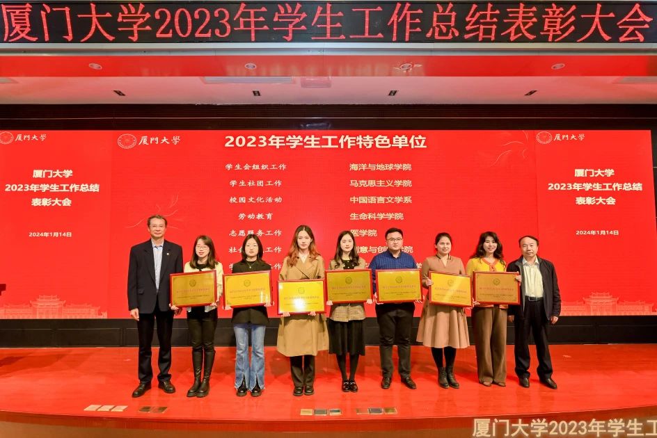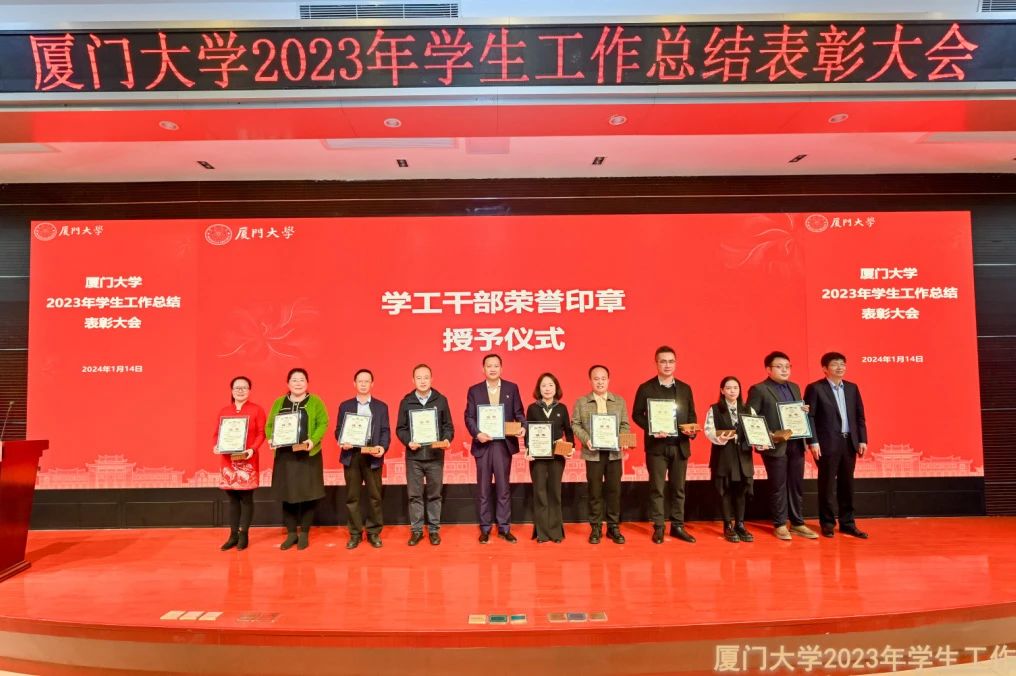 1月14日,厦门大学2023年学生工作总结表彰大会在思明校区经济学院N402报告厅举行。在2023年学生工作考评中,我院在“学生科创工作”中表现突出,获评学生工作特色单位。学院原党委副书记方银水、郑莉,原团委书记魏文龙被授予“学工干部荣誉印章”。
