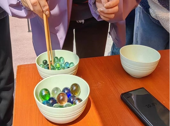 轻松愉快的投壶游戏、练习团队合作的拼图竞速、争分夺秒的夹夹绞珠,更有隐藏款立体迷宫游戏……让大家在欢快的游戏中放松身心,近距离感受到芯青年志愿者的热情和创造力。