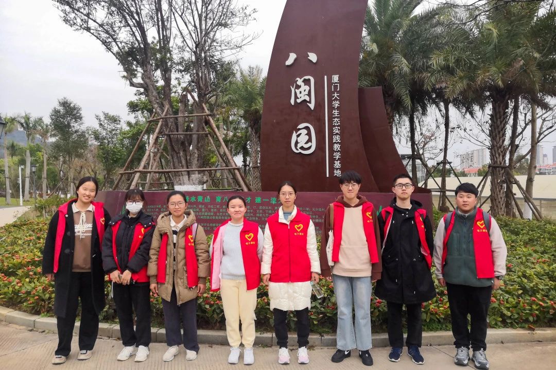 在八闽园,志愿者们边踏青边整理学院负责的莆田园。捡走白色、留下绿色,让八闽园的美更加怡人,在清新的环境中深刻体会绿水青山就是金山银山的理念。