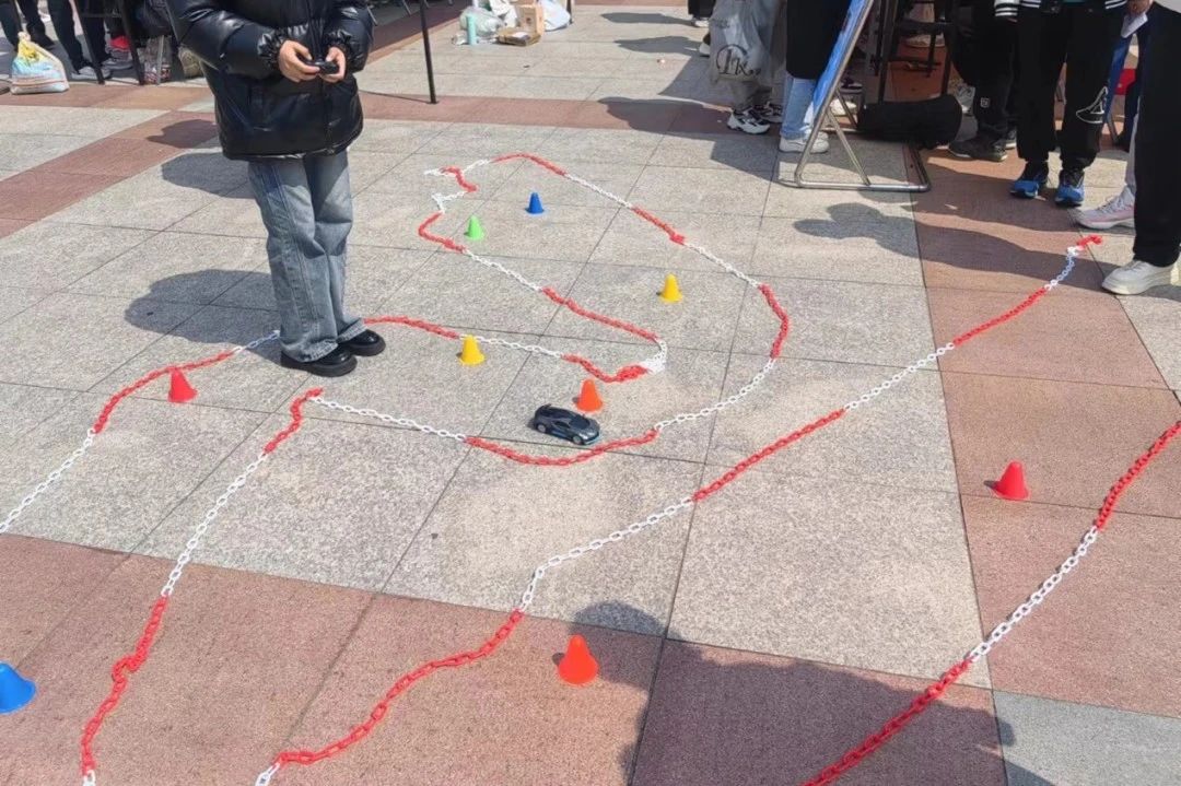丰富有趣的小游戏吸引了大量围观玩耍的同学。大家遥控赛车穿过布置好的场地赛道,在规定路线上攀爬坡道、通过惊险弯道,体会到了学院智能车的魅力,感受到对空间的把控感和电子控制的“魔法力量”。