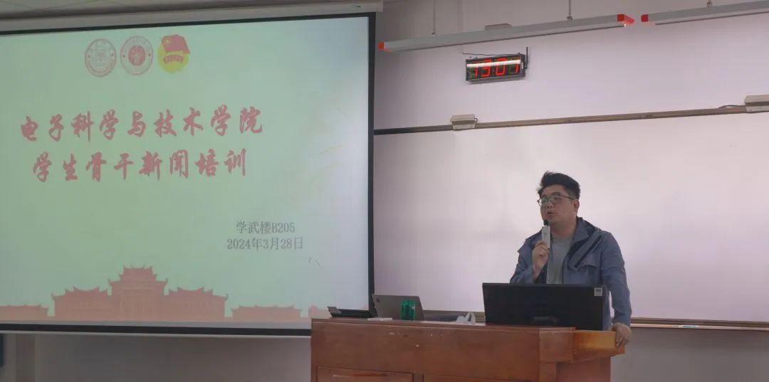 为进一步提升学院学生会各部门以及学生宣传中心的新媒体运营能力,3月28日,学院在学武楼 B205 举办电子科学与技术学院学生骨干培训会,厦门大学团委青年媒体中心翔安校区分中心部长秦烽凯受邀为芯青年分享新闻写作技能。培训会由学院团委书记胡凡主持。