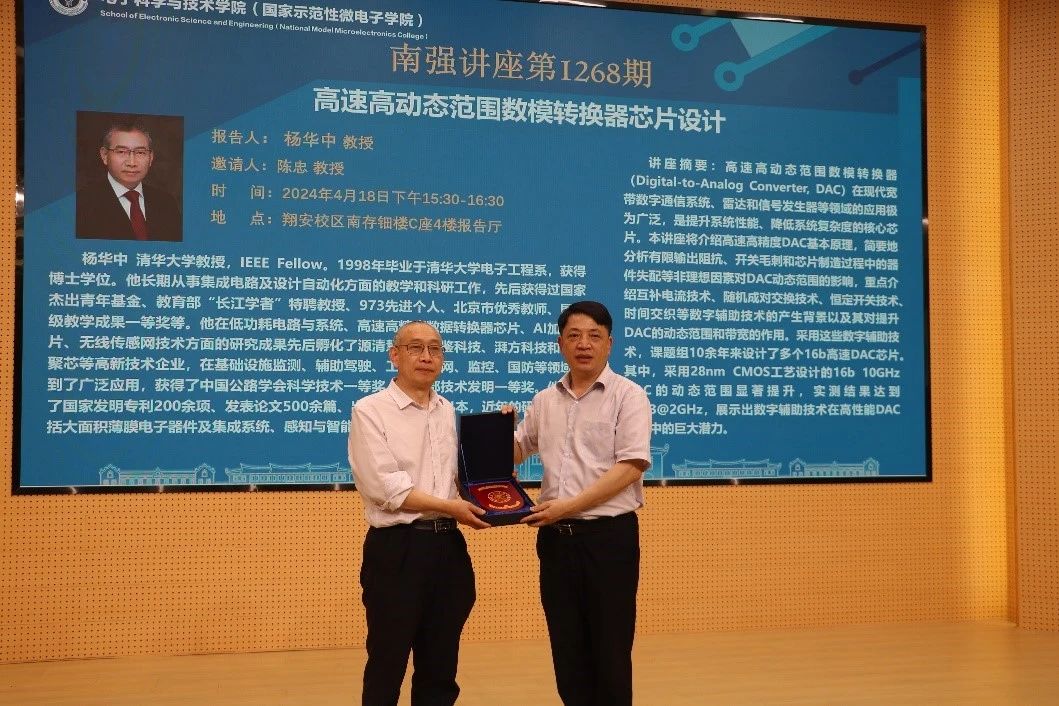 4月18日下午,第1268期南强学术讲座在厦门大学翔安校区南存钿楼C座4楼报告厅举行。清华大学杨华中教授以“高速高精度数模转换器芯片设计”为主题,带领芯青年一起探索高速高精度数模转换器领域中的芯片设计世界。讲座由学院院长陈忠教授主持。