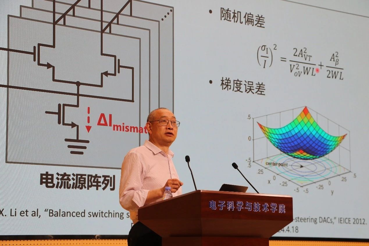 高速高动态范围数模转换器(Digital-to-Analog Converter, DAC)在现代宽带数字通信系统、雷达和信号发生器等领域的应用极为广泛,是提升系统性能、降低系统复杂度的核心芯片。杨华中教授在报告中详细介绍了高速高精度DAC基本原理,简要地分析有限输出阻抗、开关毛刺和芯片制造过程中的器件失配等非理想因素对DAC动态范围的影响,重点介绍了互补电流技术、随机成对交换技术、恒定开关技术、时间交织等数字辅助技术的产生背景以及其对提升DAC的动态范围和带宽的作用。
