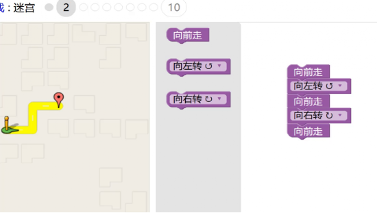 孩子们动手操作,选择了一个Blockly Game进行挑战。在志愿者的指导下,小朋友们开始尝试使用Blockly界面进行编程,一步一步走进代码世界。