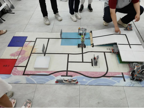 现场还有“舞蹈机器人”“循迹小车”“自制迷宫模块”等超多有趣的创客作品,为此次微展览增添许多趣味。