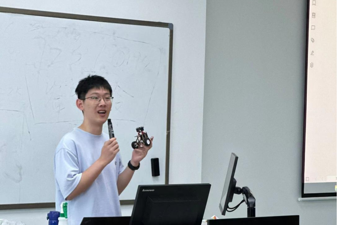 南强电子设计协会负责人、电子科学与技术学院2021级本科生石朴桓为演武小学的同学们详细介绍了本次培训活动的主要内容