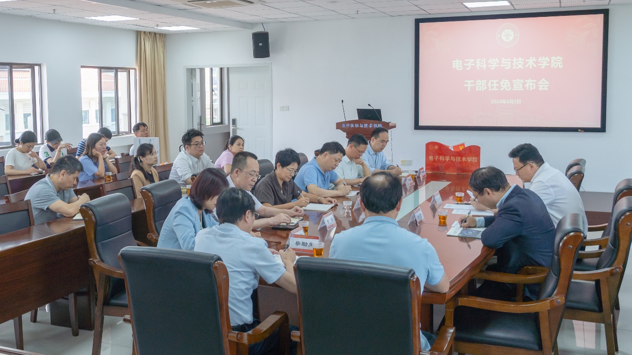 6月3日,厦门大学电子科学与技术学院干部任命宣布会在南存钿楼A513会议室召开。校党委常委、组织部部长、统战部部长孙理出席会议,学院党政领导、党委委员、科级及以上干部、辅导员参加会议。会议由孙理主持。