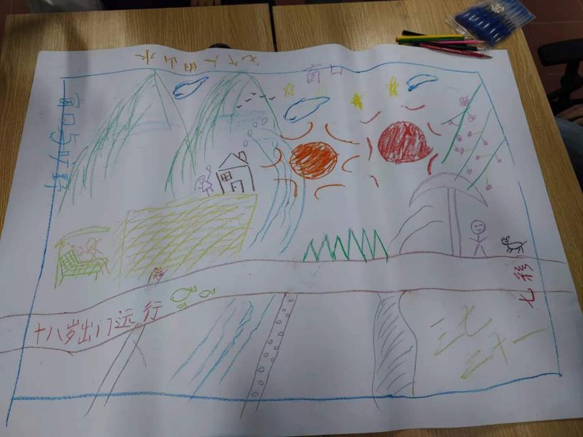 最后,在“关系适应知多少”环节中,同小组的同学们轮流绘制,共同完成了一幅自由式风景画,之后每组内每人各自分享。