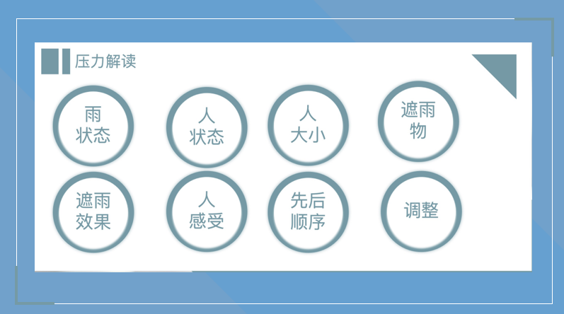 “压力知多少”环节,春夏之交,细雨绵绵,徐爽老师请同学们结合自己在生活学习中所面临的迷茫、困难和压力,也画一画自己心中的“雨中人”。之后徐爽老师带领大家对自己的画作进行压力解读: