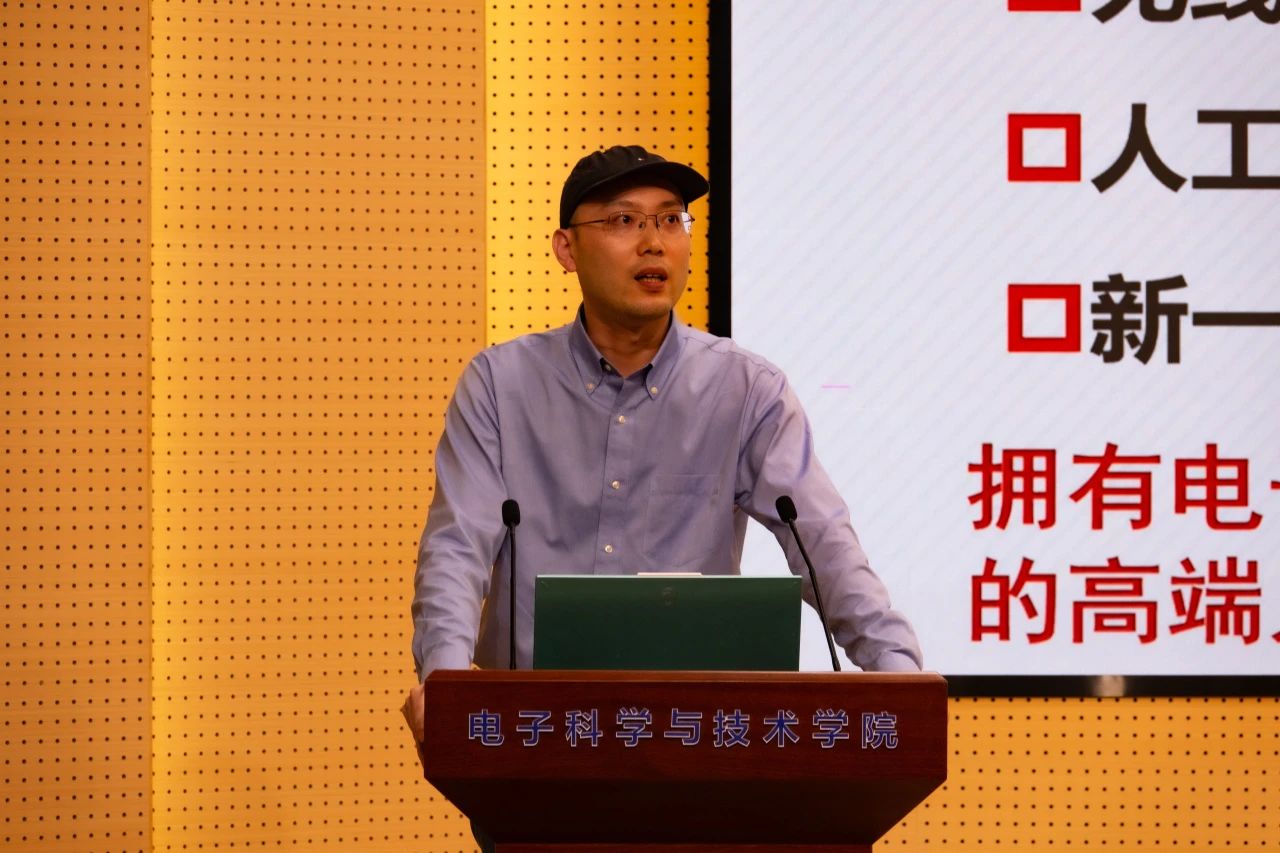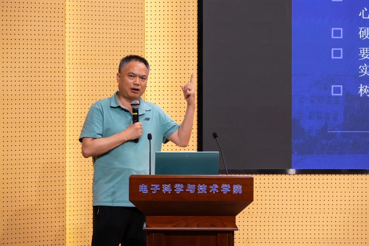 周剑扬就集成电路设计与集成系统专业的专业内容、工作内容、毕业去向和学科竞赛等方面向同学们展开介绍,强调了自主学习的重要性。