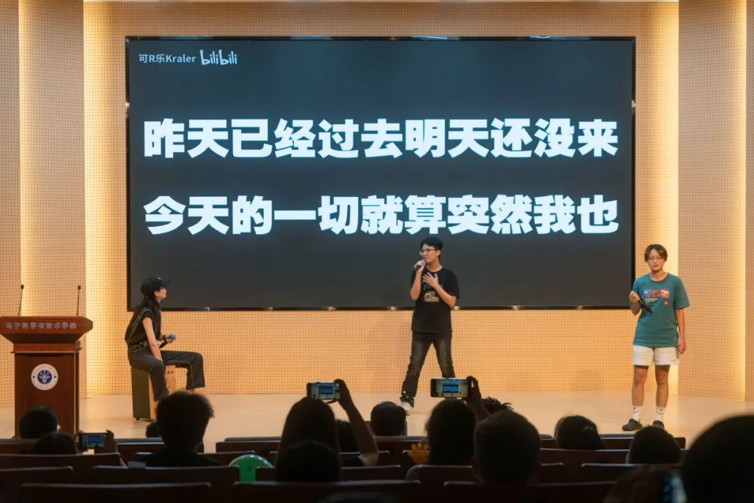 2020级电磁本科班带来童年金曲串烧,轻启时光之门,带领全场大合唱,勾起同学们美好的青春回忆。