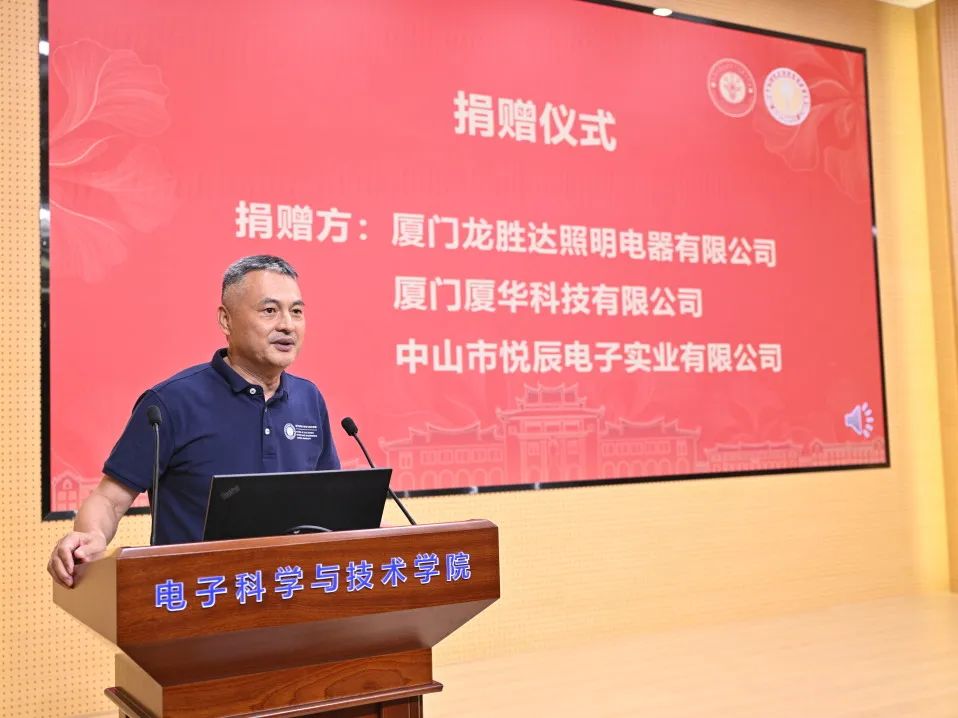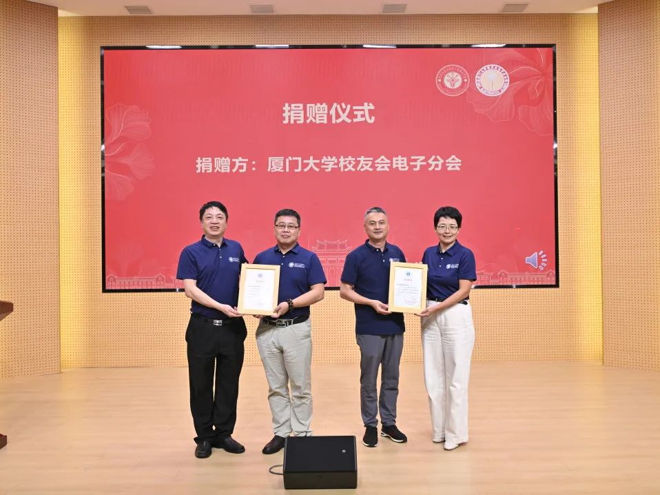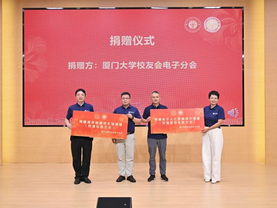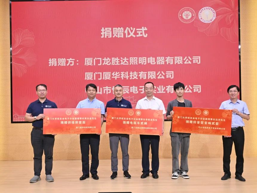 大会举办捐赠仪式。厦门大学校友会电子分会代表李希龙、李明凡,厦门厦华科技有限公司总经理商永金,中山市悦辰电子实业有限公司董事长沈洋及其他热心校友,为学院的科研教育事业注入了源源不断的能量,以实际行动彰显了对学院的深情厚谊。