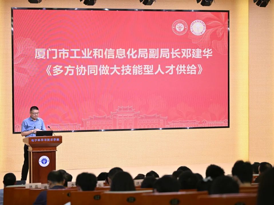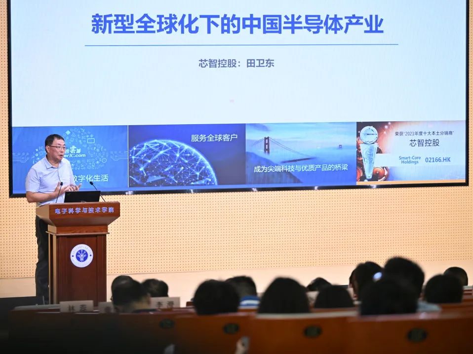 主题报告环节,邓建华、芯智控股有限公司董事长田卫东以及厦门大学电子科学与技术学院院长陈忠教授,分别从不同角度对电子与集成电路领域的未来趋势进行了深度剖析,他们的见解深刻,启发了在场听众对行业未来的思考。