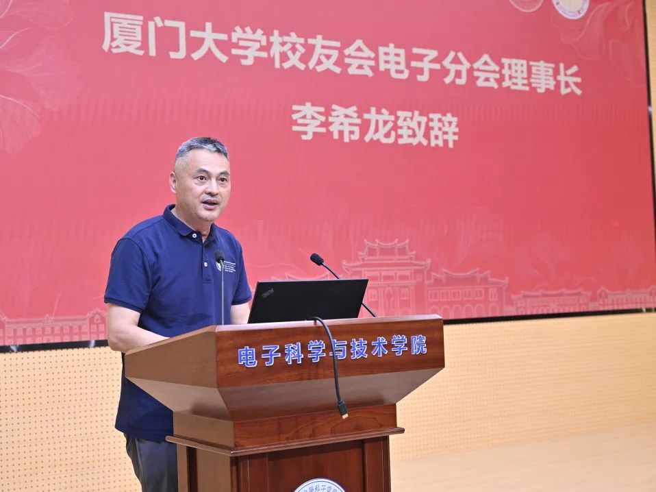 厦门大学校友会电子分会理事长李希龙的致辞为活动拉开了序幕。他鼓励现场的校友、学者及企业家,把握时代机遇,充分利用本次沙龙平台,深化交流合作,为推进行业创新、培养更多高层次人才贡献力量。