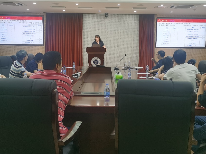 张丹在会议上详细汇报了2024年微电子与集成电路系的教学相关情况,重点介绍了微电子科学与工程专业课程设置和培养方案情况,并讲解了几所有代表性的高校的培养方案。她提到,培养方案应注重学科特色和综合素质培养,期待与系里教师共同努力,不断调整和完善课程设置与培养方案,以适应行业发展的变化,为国家解决“卡脖子”关键科学技术问题,并为学生提供更优质的教育体验。