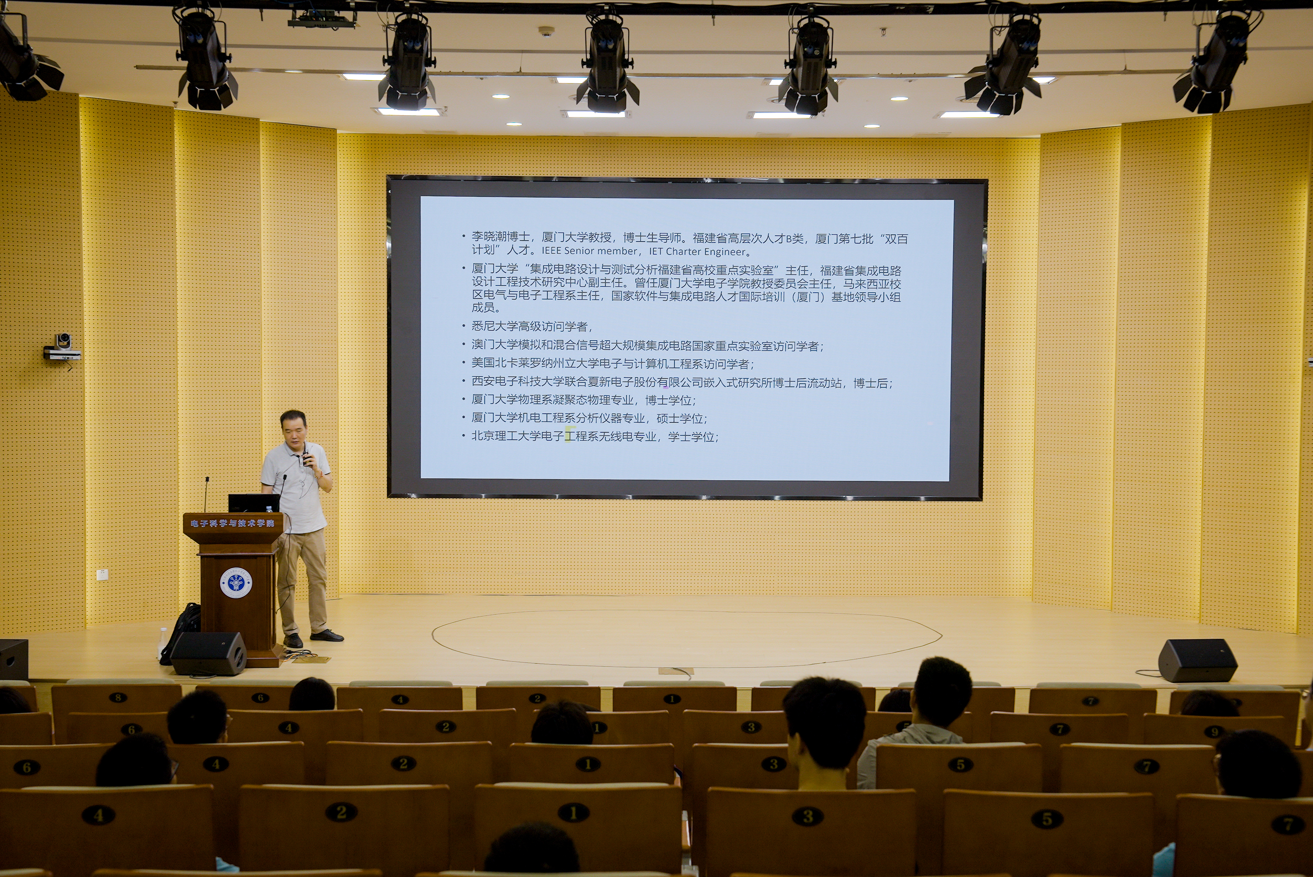 8月5日晚,开营仪式在厦门大学翔安校区南存钿楼C栋报告厅举办。学院办公室主任陈精锋代表学院对参加夏令营的同学们表示热烈的欢迎,并鼓励大家在接下来的一周里深入探索电子科技的奥妙。
