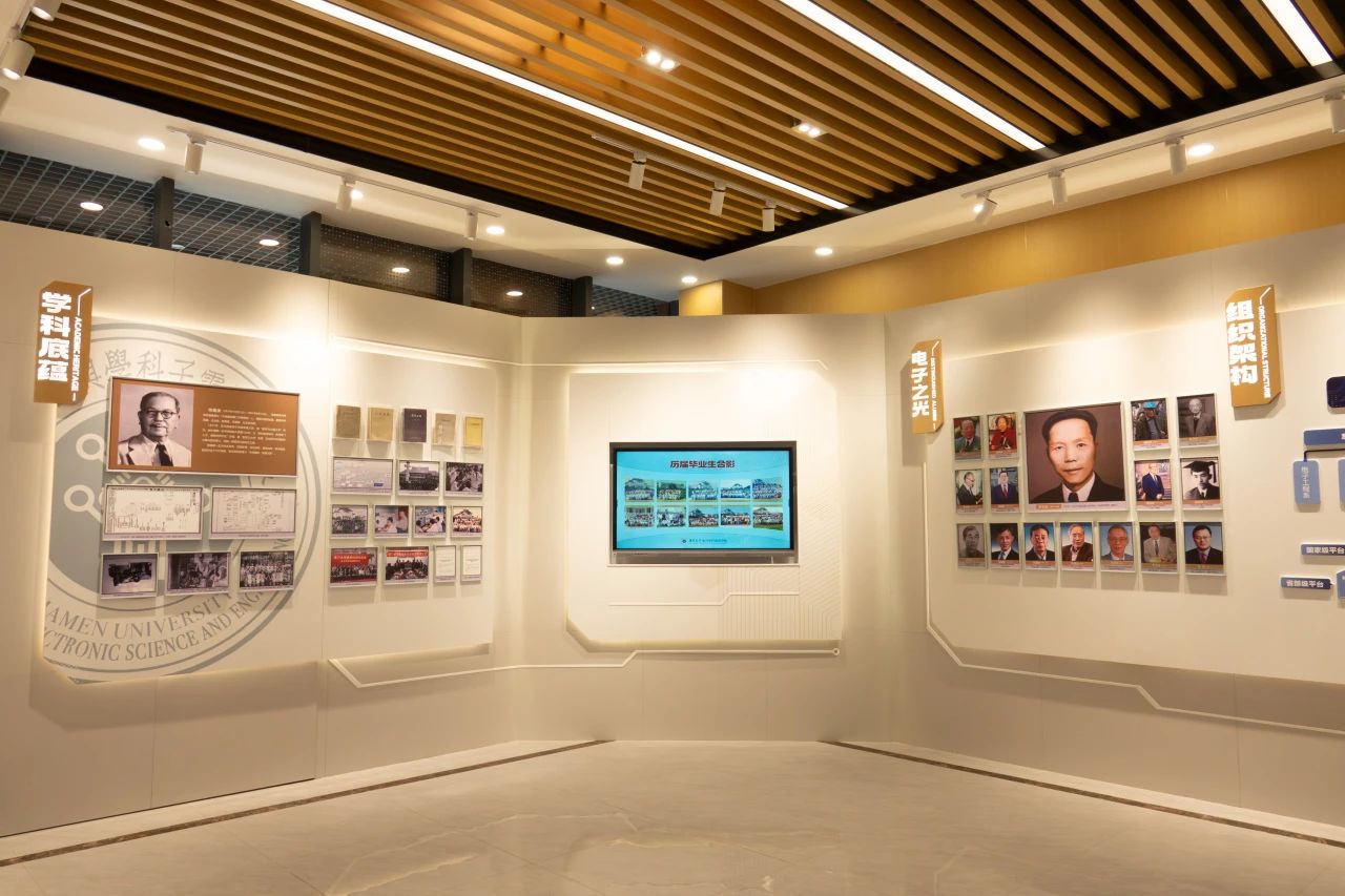 电子科学与技术学院院史文化长廊设立于翔安校区文宣楼B区一楼公共空间,由学科底蕴、电子之光、师资队伍、党旗灼灼等专题模块组成,展示了厦大电子学科从无到有的重要节点、重要事件、重要成果。学院前进征程中历任学科带头人悉心任事,多有建树;众位教师精心耕耘,孜孜不倦;多位校友反哺母校,捐资助学;莘莘学子锐意进取,青出于蓝。2024年,学院聚全院之智、举全院之力打造院史文化长廊,是继邀请萨支唐院士亲笔题写“院名石”之后,对“电”文化底蕴的又一次深情传承。